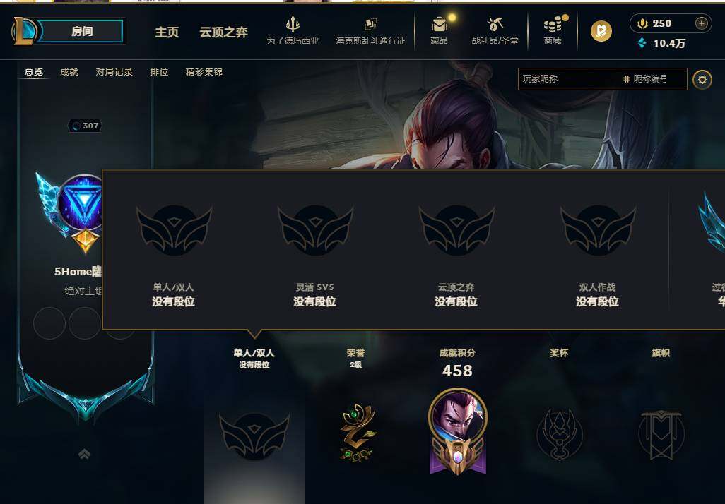 112英雄/57皮肤/1神话/4限定/1臻彩/6炫彩/9传说/18史诗/未定级账号等级:307/