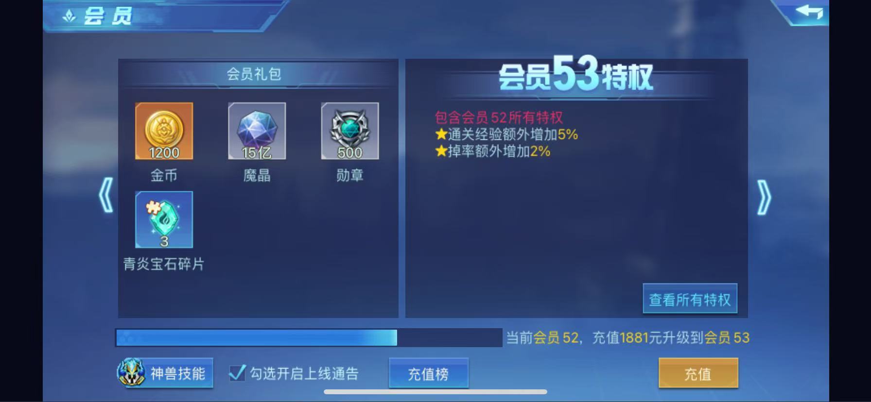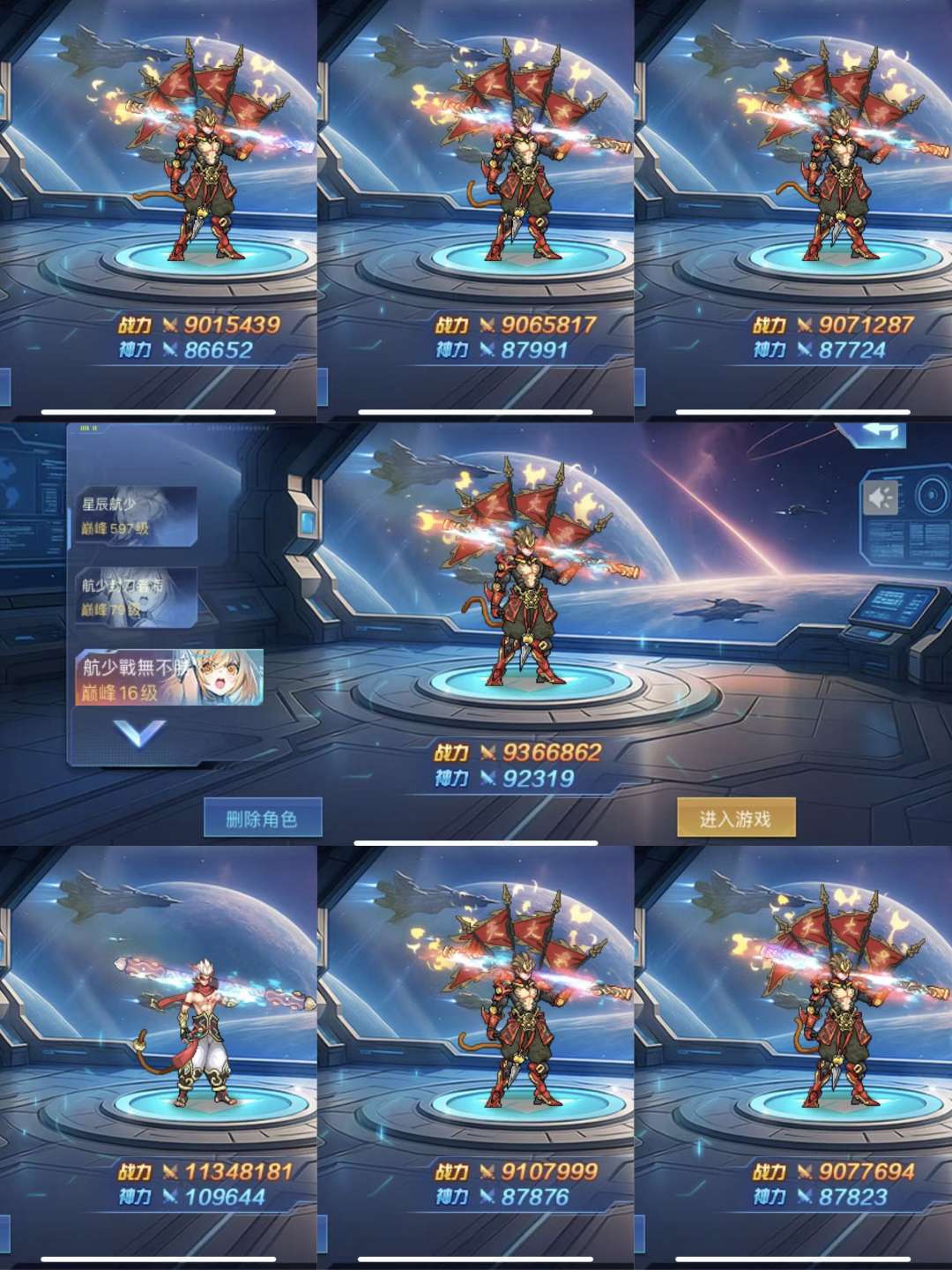 出原战力1830+,现在1795万VIP52级雷神,全机甲角色次元觉醒,齐天满战甲觉醒,47万守护(星月悟空灼烧),67万星盾,17个拖尾,165个时装,6大满级光环,33万空间,战榜20来名,背包一百多张凭证,带7个900万以上小号