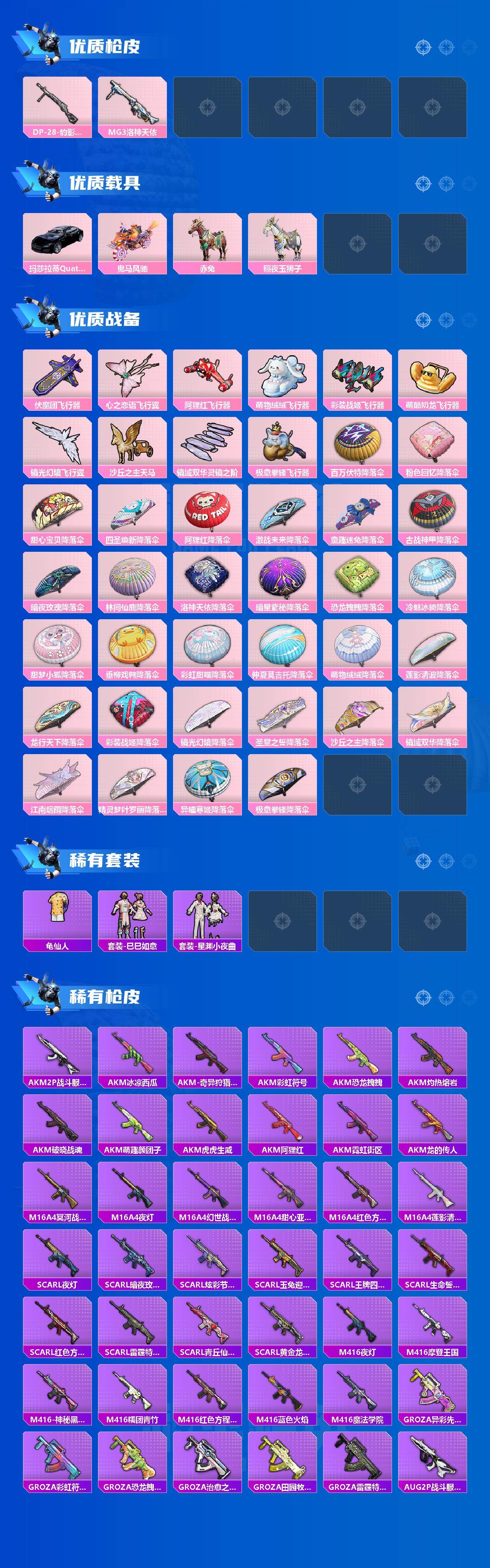【A5804】安卓【极品神装号 沙丘之主-图卡盟(二级)/镜域双华-欧若拉/套装-冥河战士/粉装-怪诞乔克/粉装-雪国幻梦/粉装-梦幻火箭/粉装-缤纷油彩/套装-赤蝎幽灵/套装-都市猎人/角色-2P战斗服款/套装-SS1特训/套装-暗影哥特/甜心三姐妹/粉装-放客神游/角色-洛天依/M416-五爪金龙(五级)/M416-风花雪月(七级)/玛莎拉蒂Quattroporte(夜幕蓝)】 手Q-2神装-39粉装-13特效枪-4载具-11粉色飞行器-136336热力值-14王牌印记-336套装-347枪