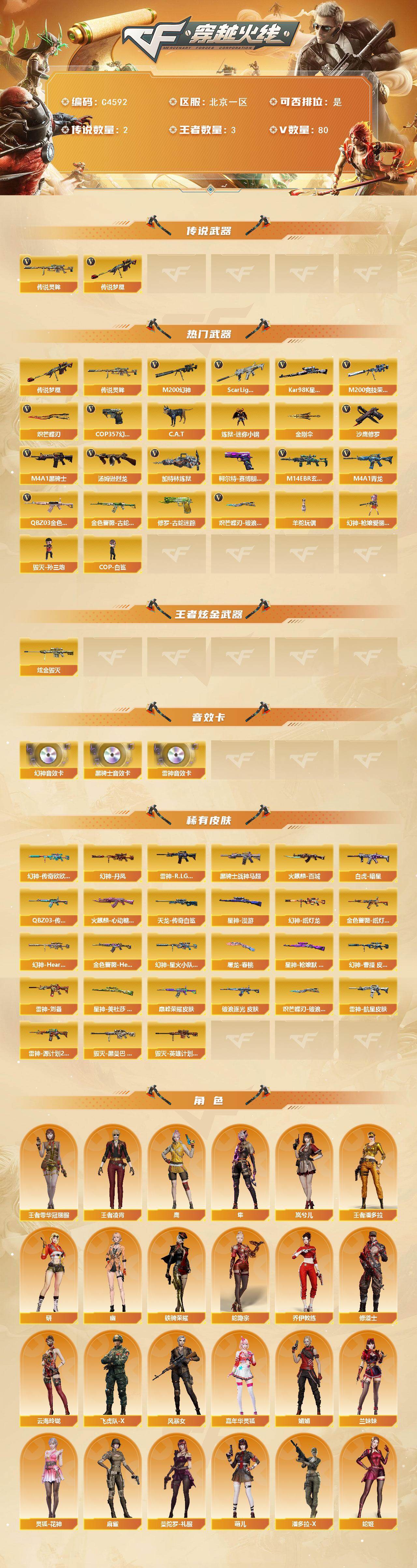 【C4592】北京一区-83V-3王者武器数-1炫金武器数