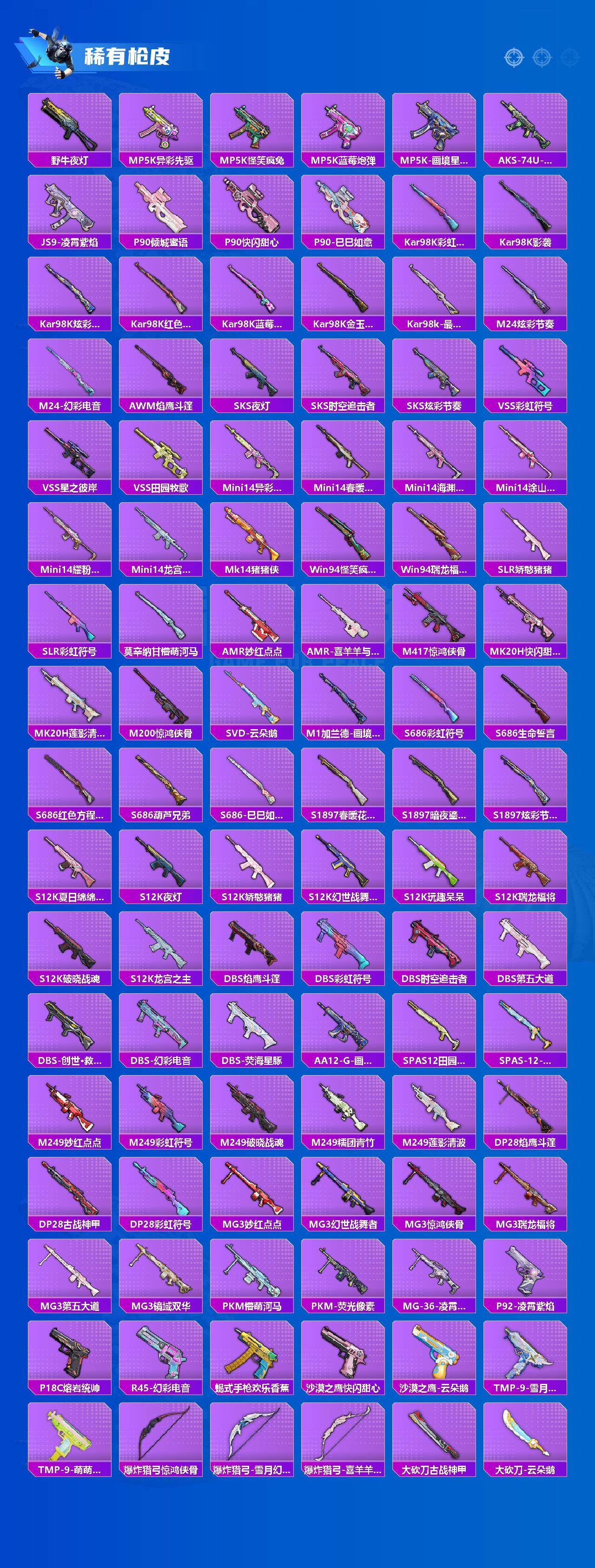 1神装-13粉装-8特效枪-1载具-3粉色飞行器-115821热力值-10王牌印记-263套装-343枪皮