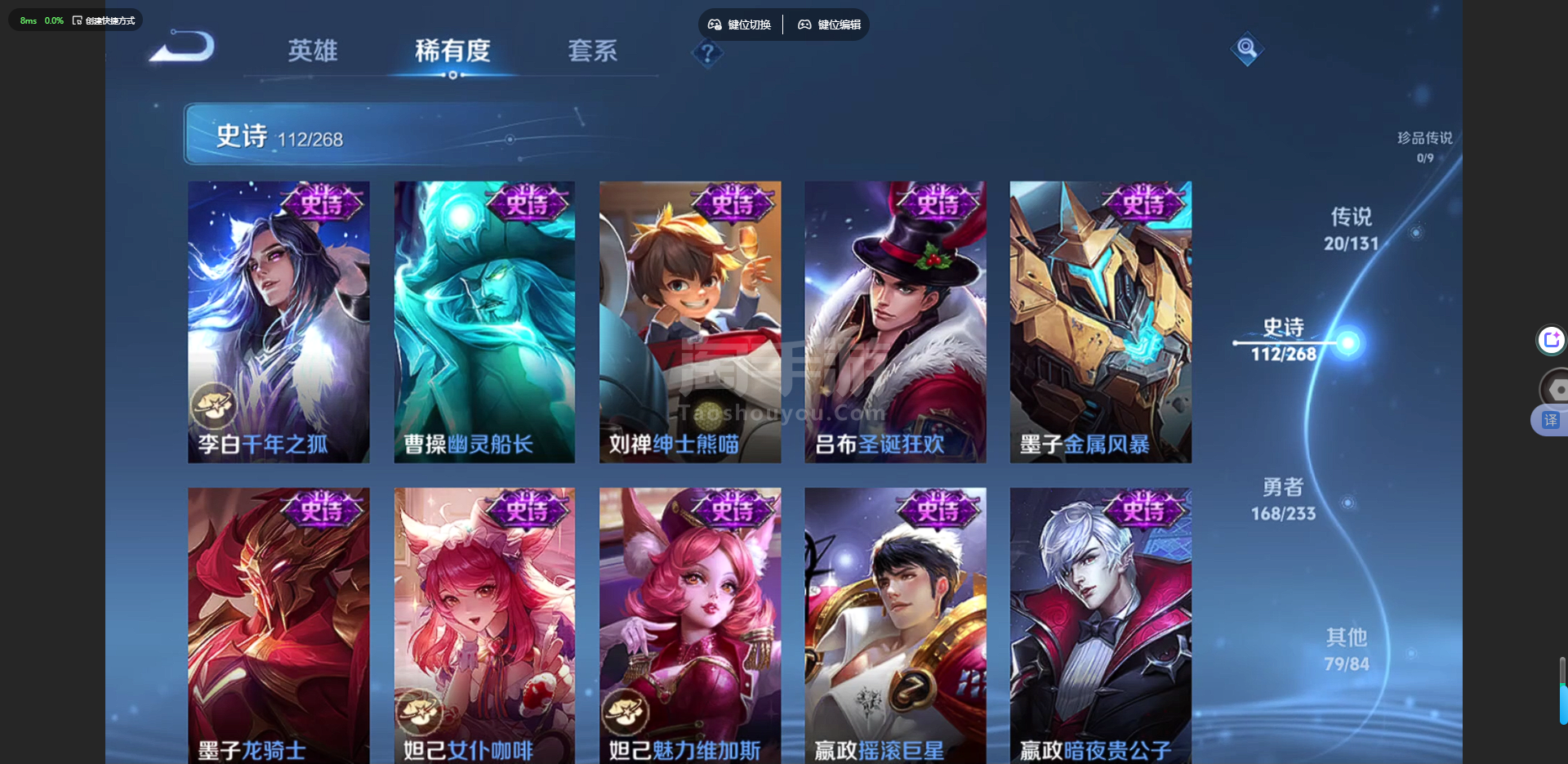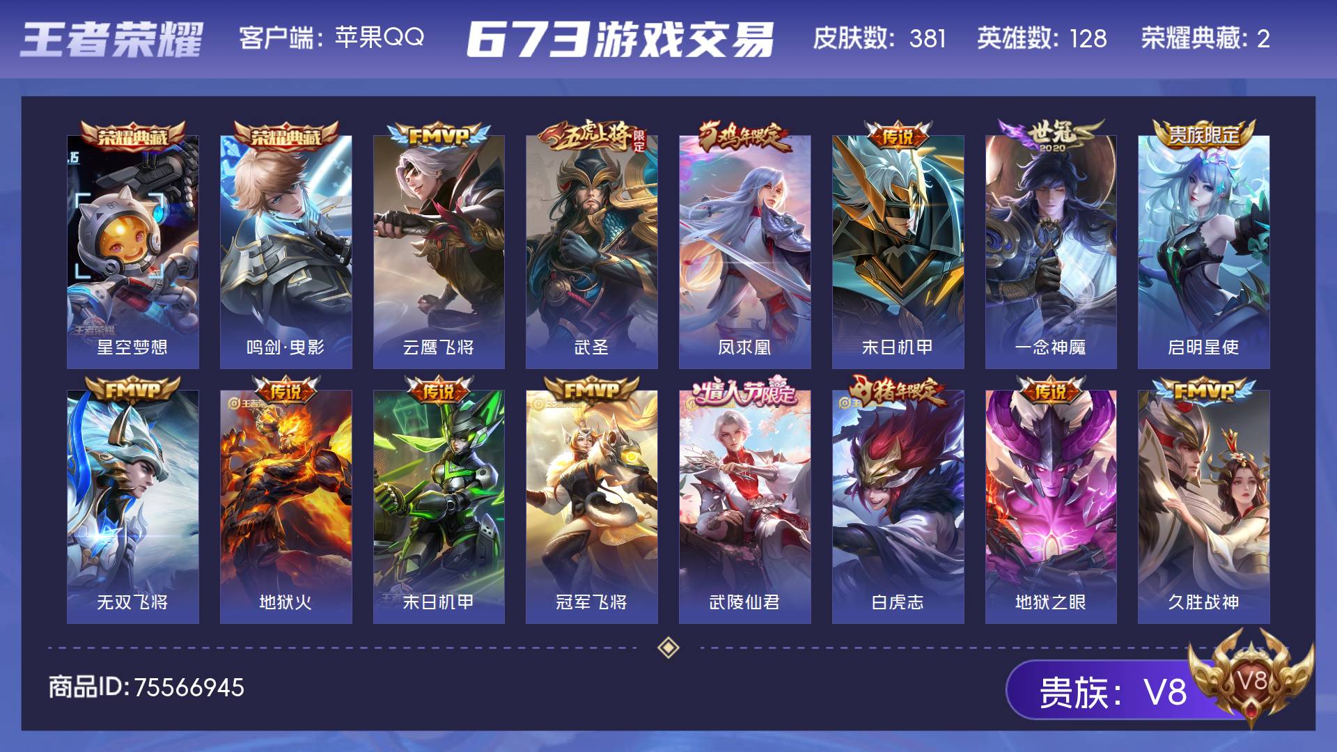 苹果QV8皮肤381 非凡王者 荣耀典藏2 传说20 史诗112 星传说3 天幕1,白虎志武陵仙君凤求凰品质号诚出!!
