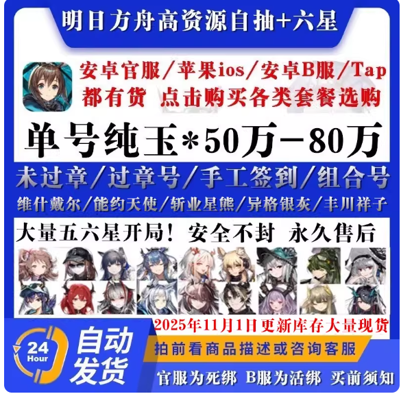活绑直登安卓B服-25w玉+伺夜+2六星自选包【含910源石安全不封】