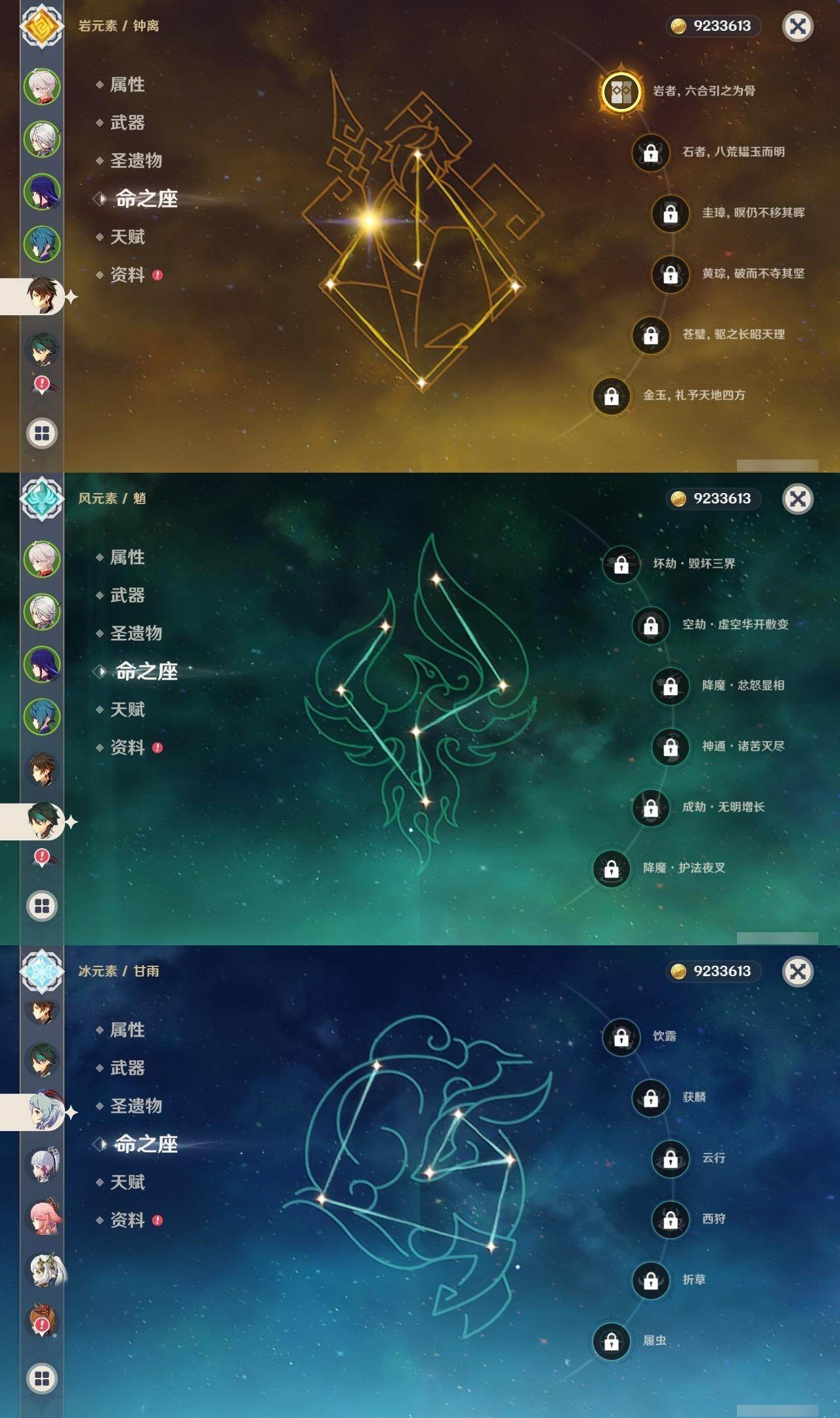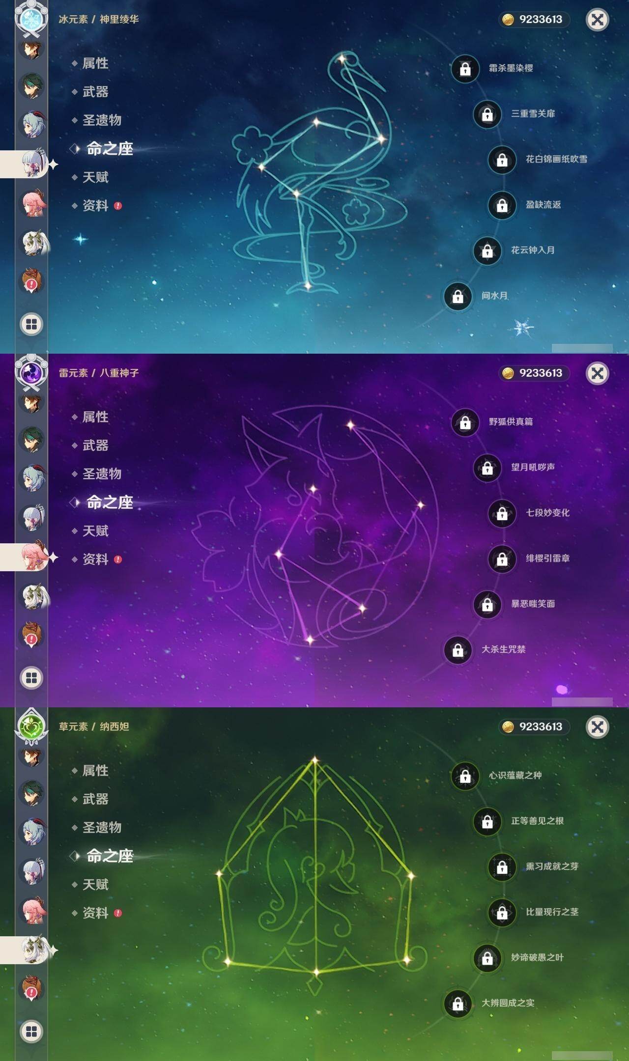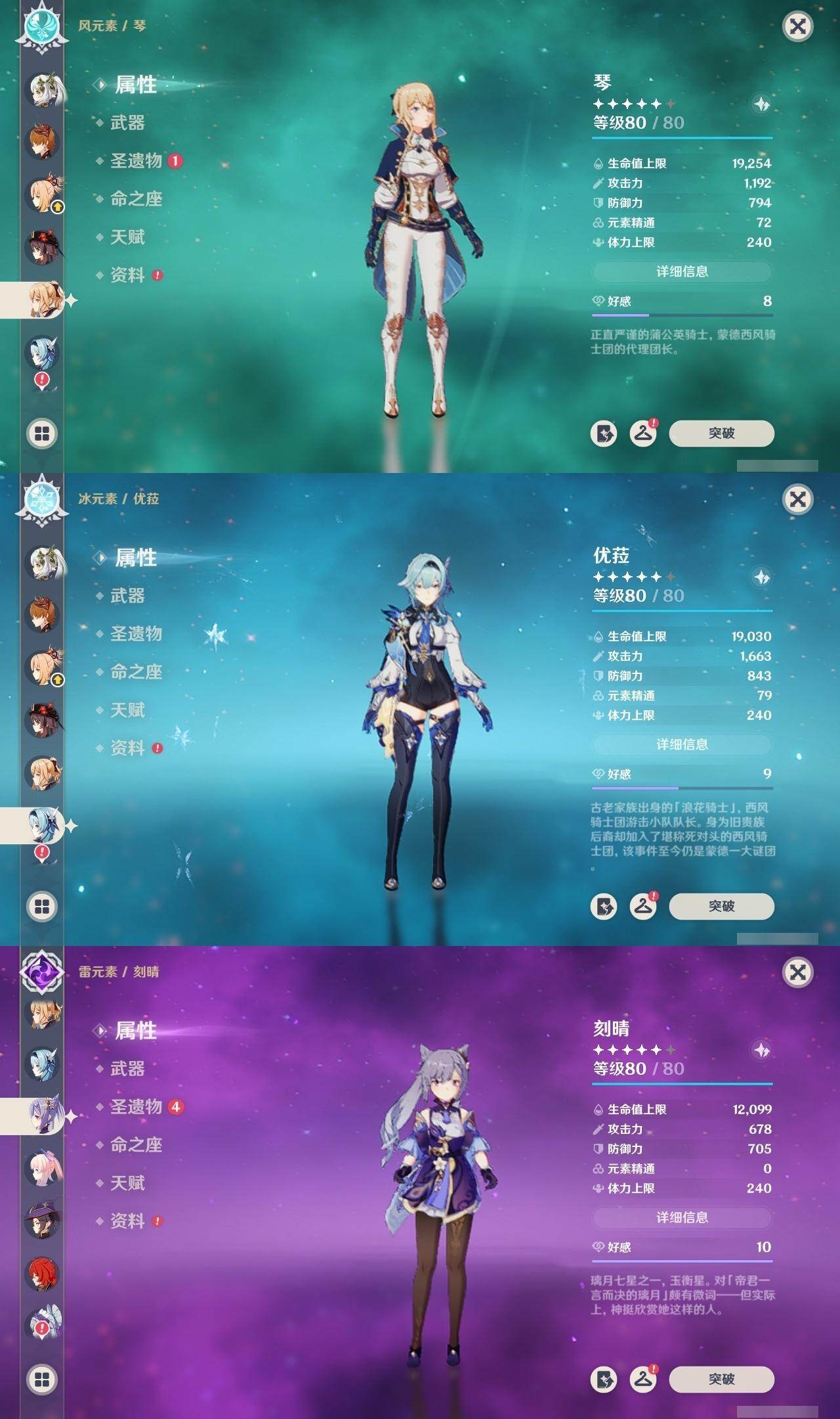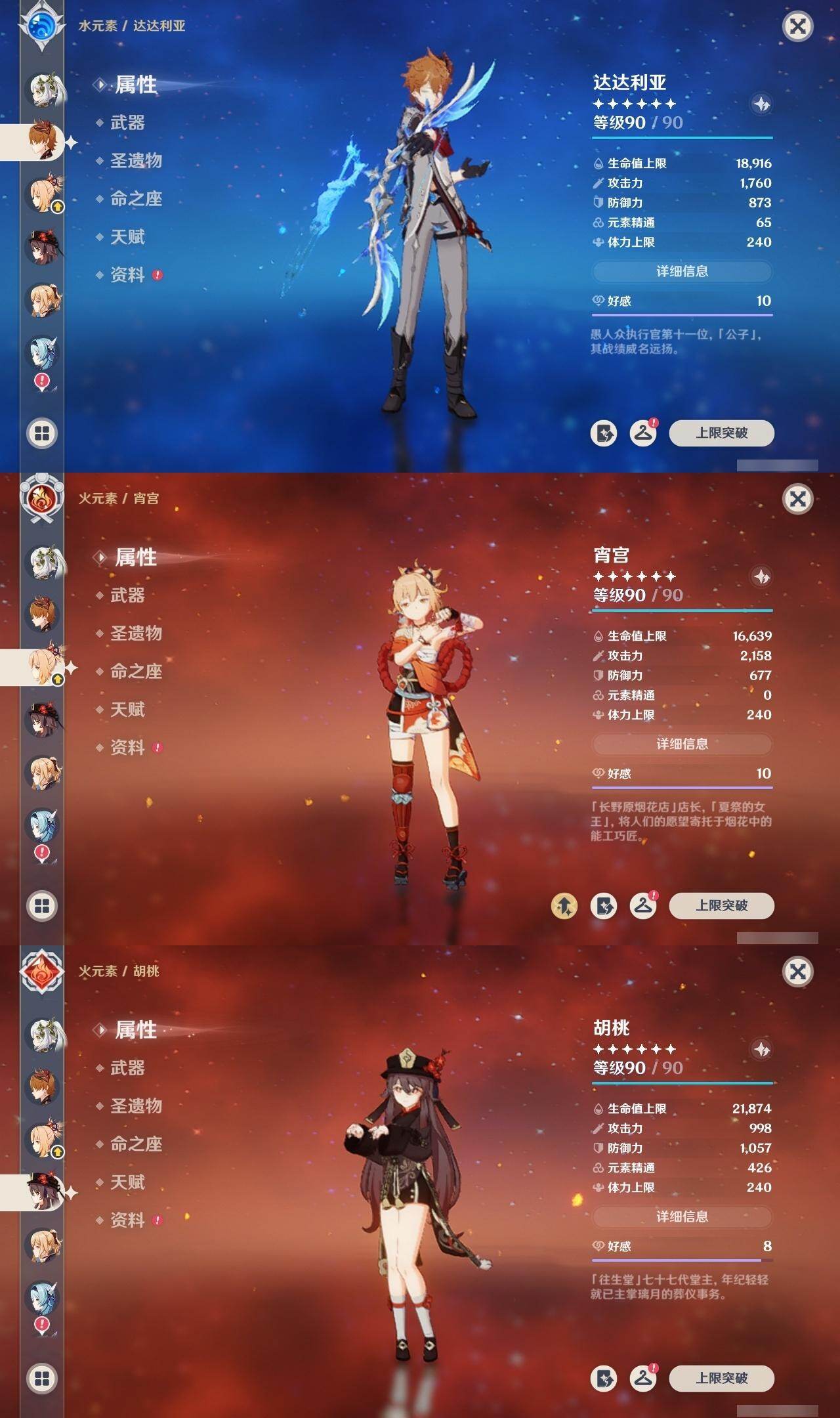 0命阿蕾奇诺,0命迪希雅,0命纳西妲,0命提纳里,0命八重神子,0命优菈,0命雷电将军,0命枫原万叶,0命神里绫华,1命钟离,0命胡桃,0命甘雨,0命魈,0命宵宫,1命达达利亚,0命珊瑚宫心海,2命刻晴,0命琴,2命莫娜,3命迪卢克,0命玛薇卡,0命梦见月瑞希,0命杜林,精1赤月之形,精1千夜浮梦,精1若水,精1神乐之真意,精1冬极白星,精1
