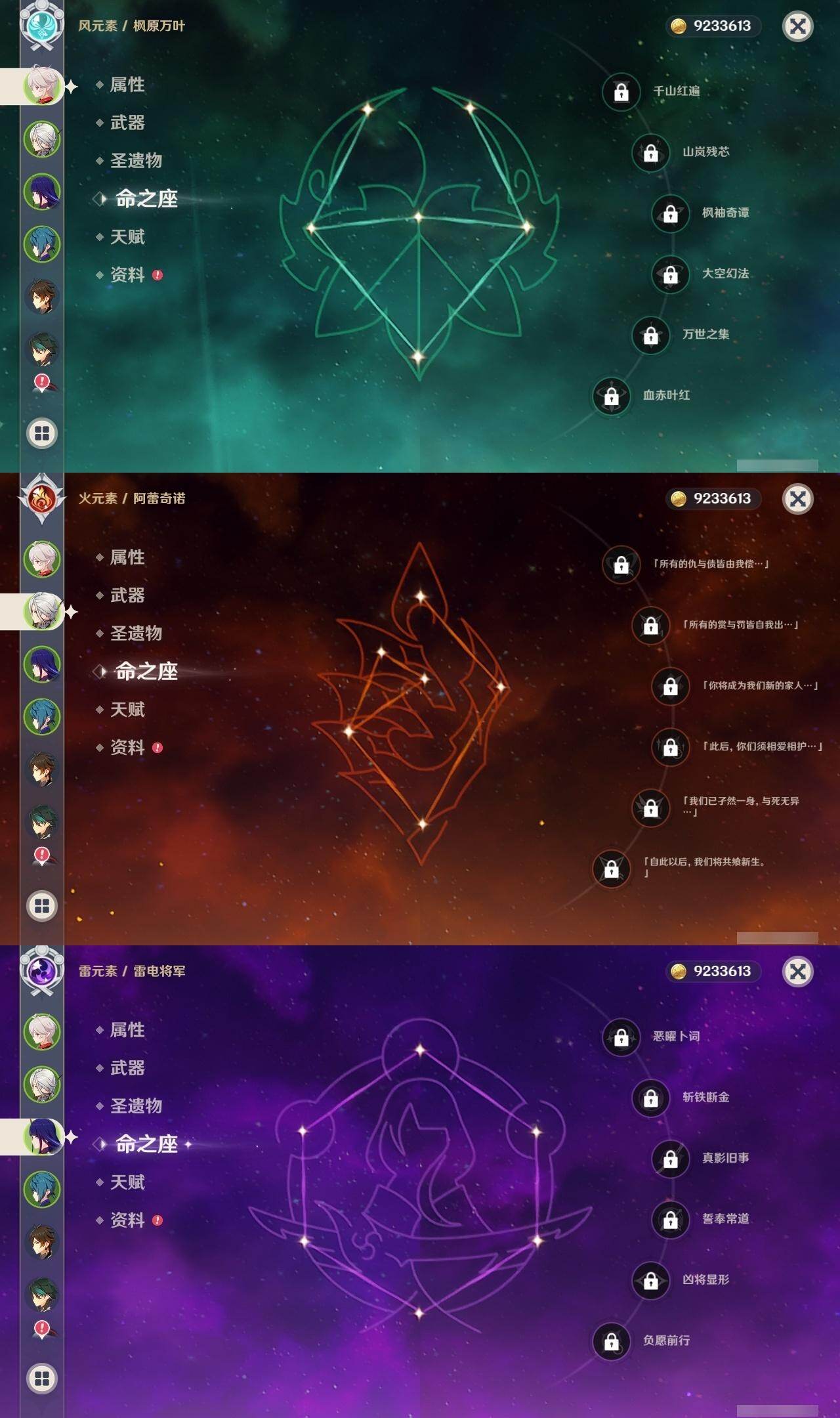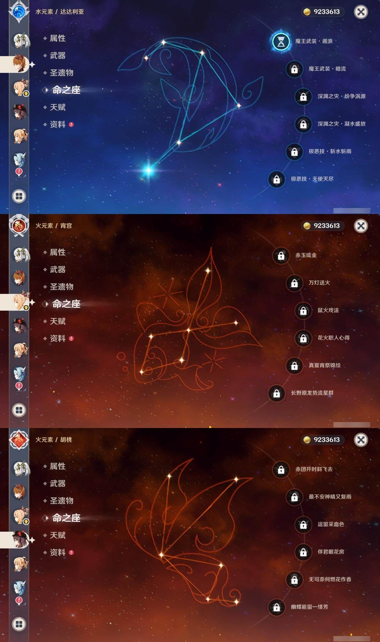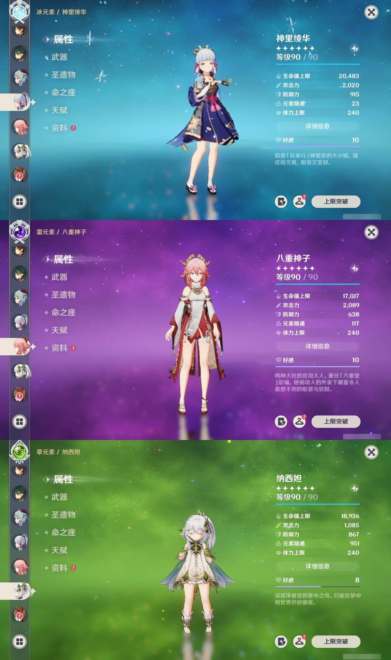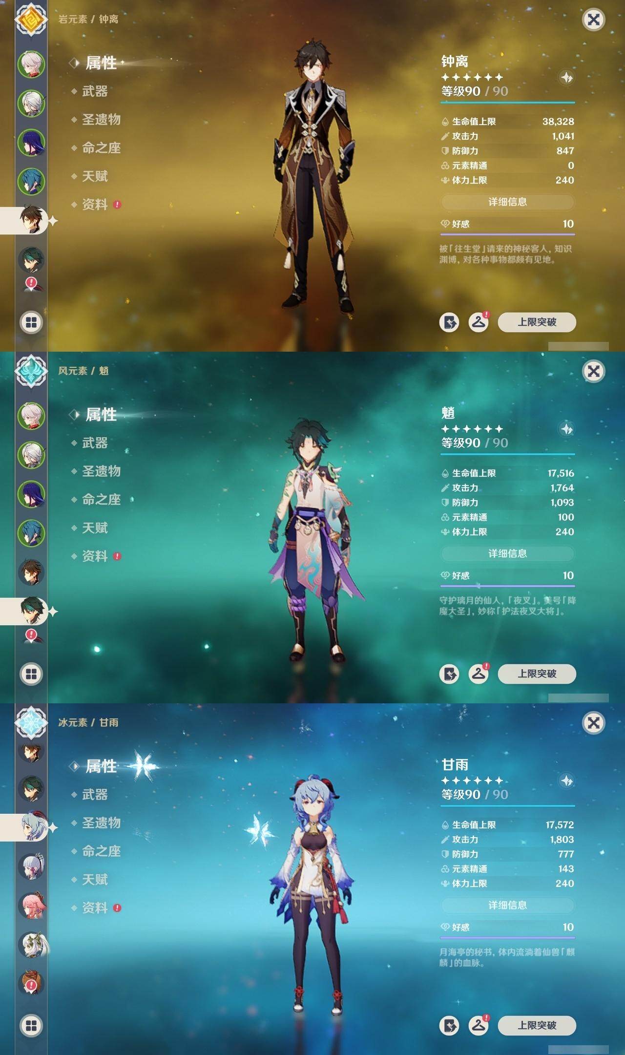 0命阿蕾奇诺,0命迪希雅,0命纳西妲,0命提纳里,0命八重神子,0命优菈,0命雷电将军,0命枫原万叶,0命神里绫华,1命钟离,0命胡桃,0命甘雨,0命魈,0命宵宫,1命达达利亚,0命珊瑚宫心海,2命刻晴,0命琴,2命莫娜,3命迪卢克,0命玛薇卡,0命梦见月瑞希,0命杜林,精1赤月之形,精1千夜浮梦,精1若水,精1神乐之真意,精1冬极白星,精1