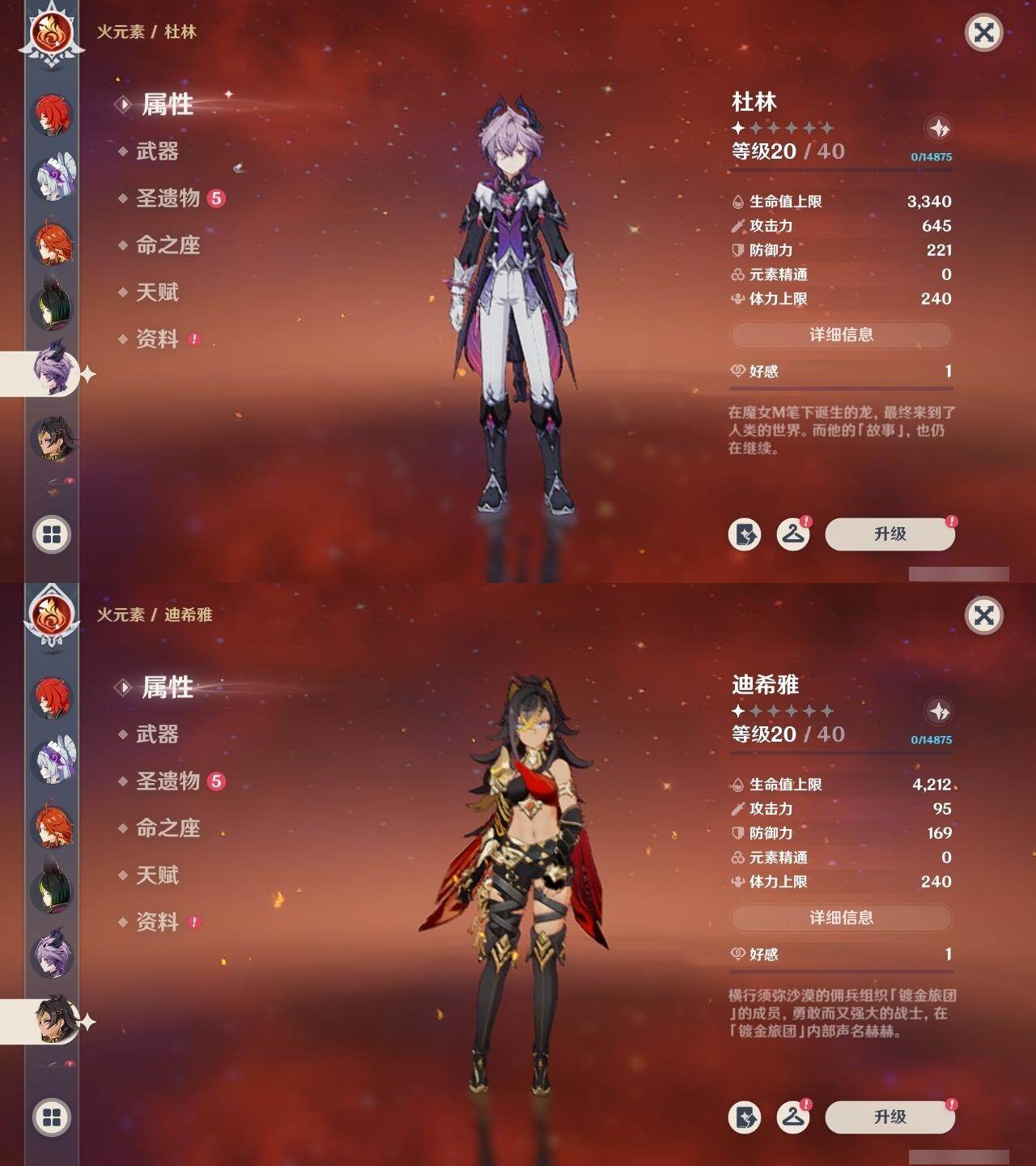 60级/50黄/女主/23个五星角色/16个五星武器0命阿蕾奇诺,0命迪希雅