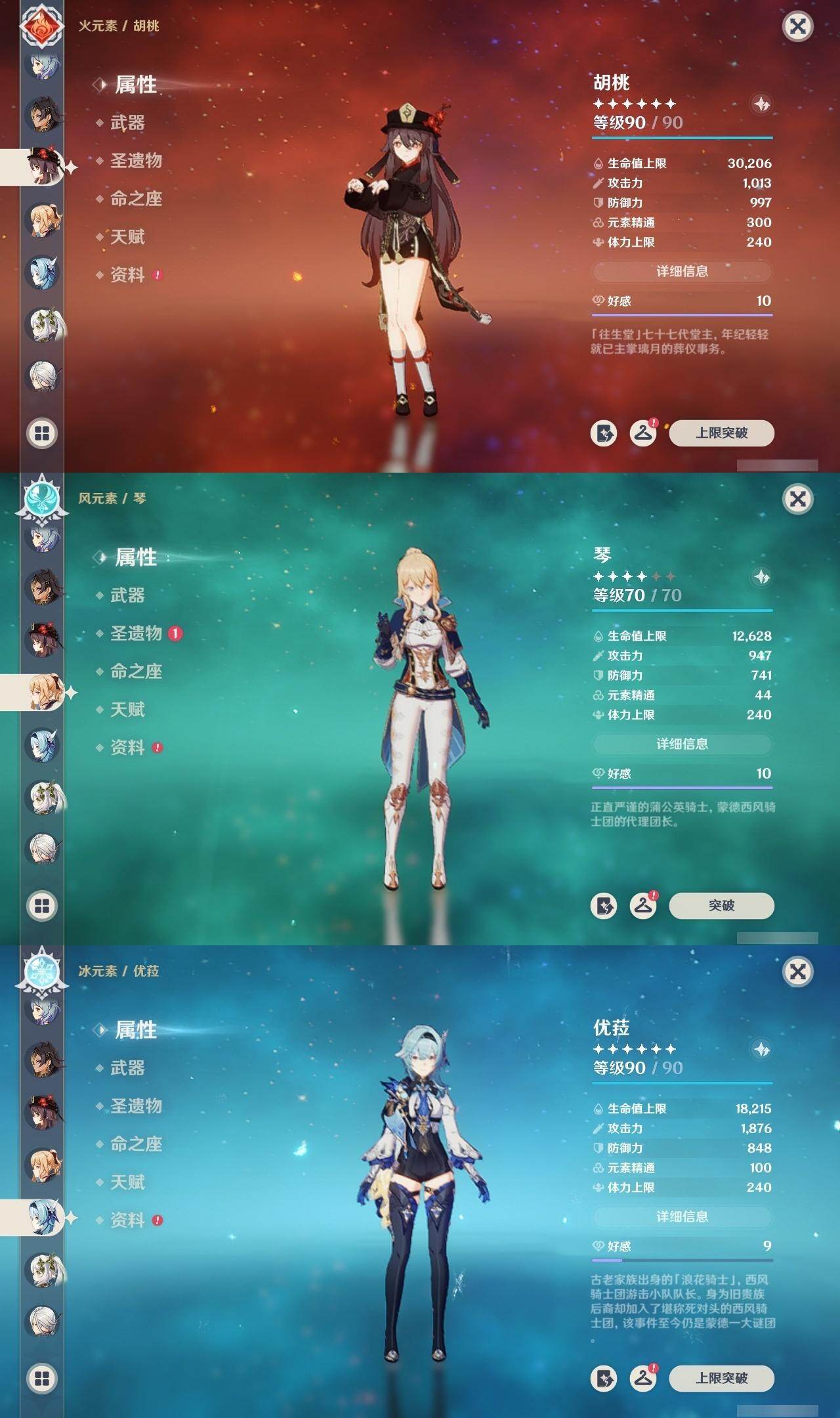 57级/30黄/女主/20个五星角色/7个五星武器