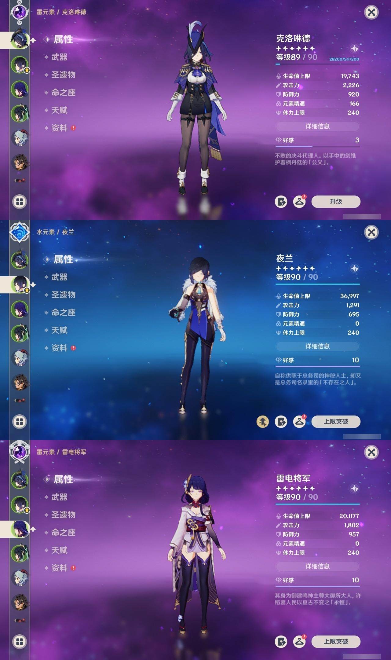 57级/30黄/女主/20个五星角色/7个五星武器0命克洛琳德,0命阿蕾奇诺