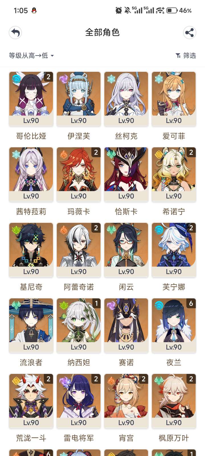 6加1胡桃6命夜兰,10个俩命角色关键命座,玩法挺多永冻队纳塔战舰啥的