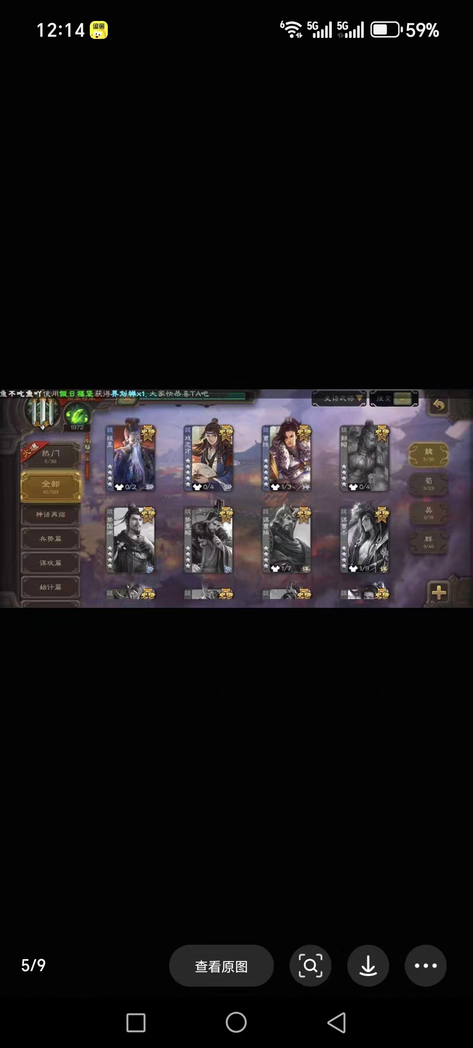 领军郑玄戏志才神吕布诸葛瞻花鬘左慈谋张角界黄忠程昱曹纯10史诗