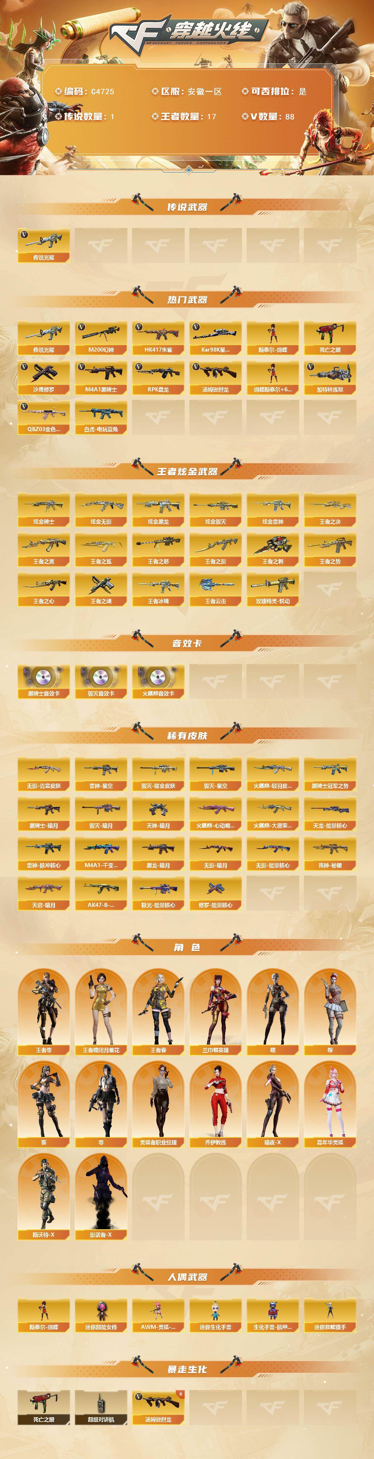 【C4725】安徽一区-93V-17王者武器数-8炫金武器数