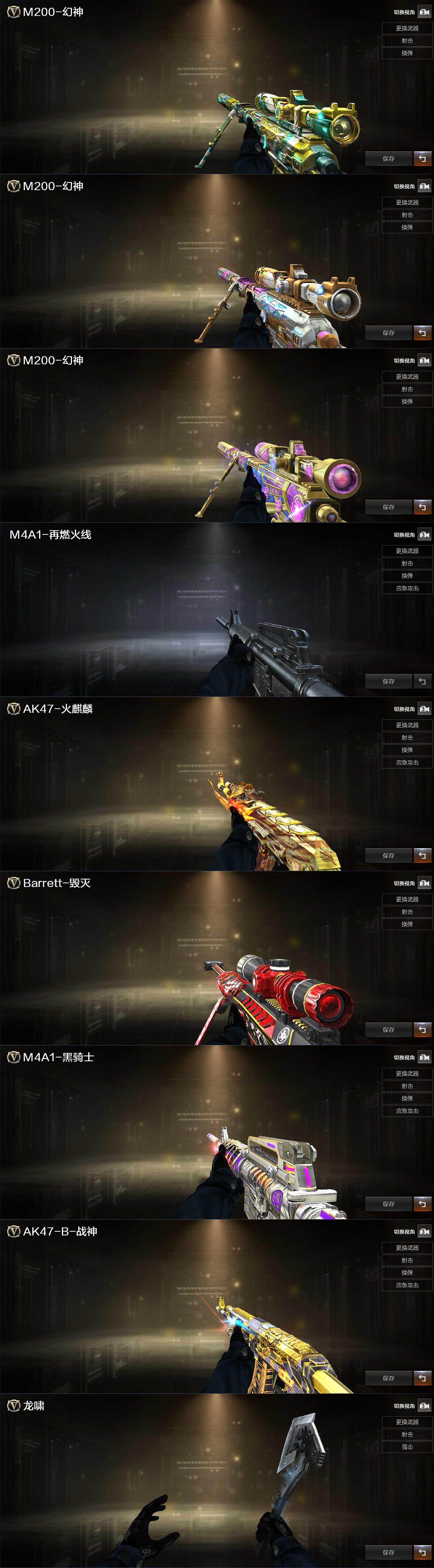 【热门武器】:G36C-幻影,M200-幻神,金色蔷薇-古蛇迷踪,修罗-古蛇迷踪,M200-竞技荣光,白虎-电玩蓝兔,金色小号,USP-雷暴