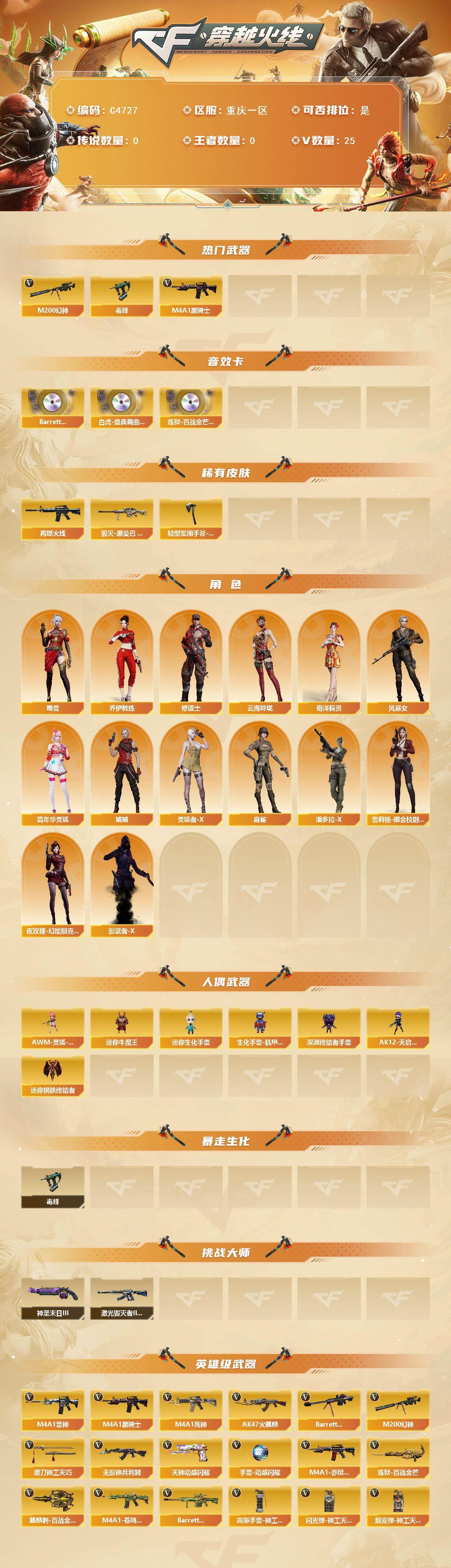 【C4727】重庆一区-26V-0王者武器数-0炫金武器数