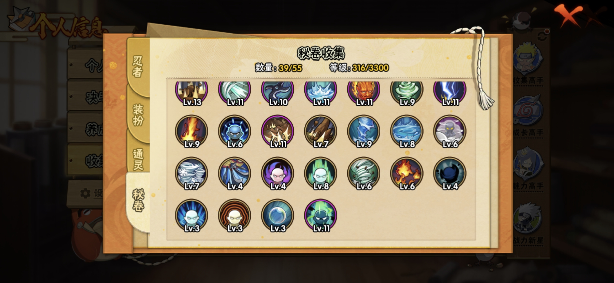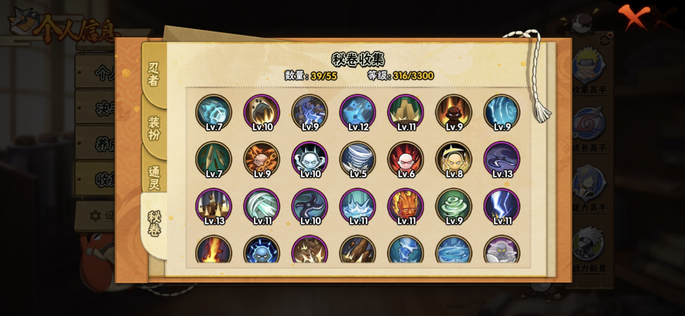 MHY3896【区服】2682【等级】138【S级数量】9【A级数量】19【B级数量】31【C级数量】43 【通灵】 砂之守鹤 忍犬 蓝蛇 蛤蟆吉 忍龟 镰鼬 猿魔 山椒鱼 蜃 蛤蟆仙人 鲛鲨 蛤蟆健 乌鸦 【S级】宇智波佐助「永恒万花筒」 迈特凯「死门」 自来也「舞之豪杰」 宇智波鼬「须佐能乎」 波风水门 漩涡鸣人·宇智波佐助 佩恩「天道」 大蛇丸 宇智波斑「五影会谈」