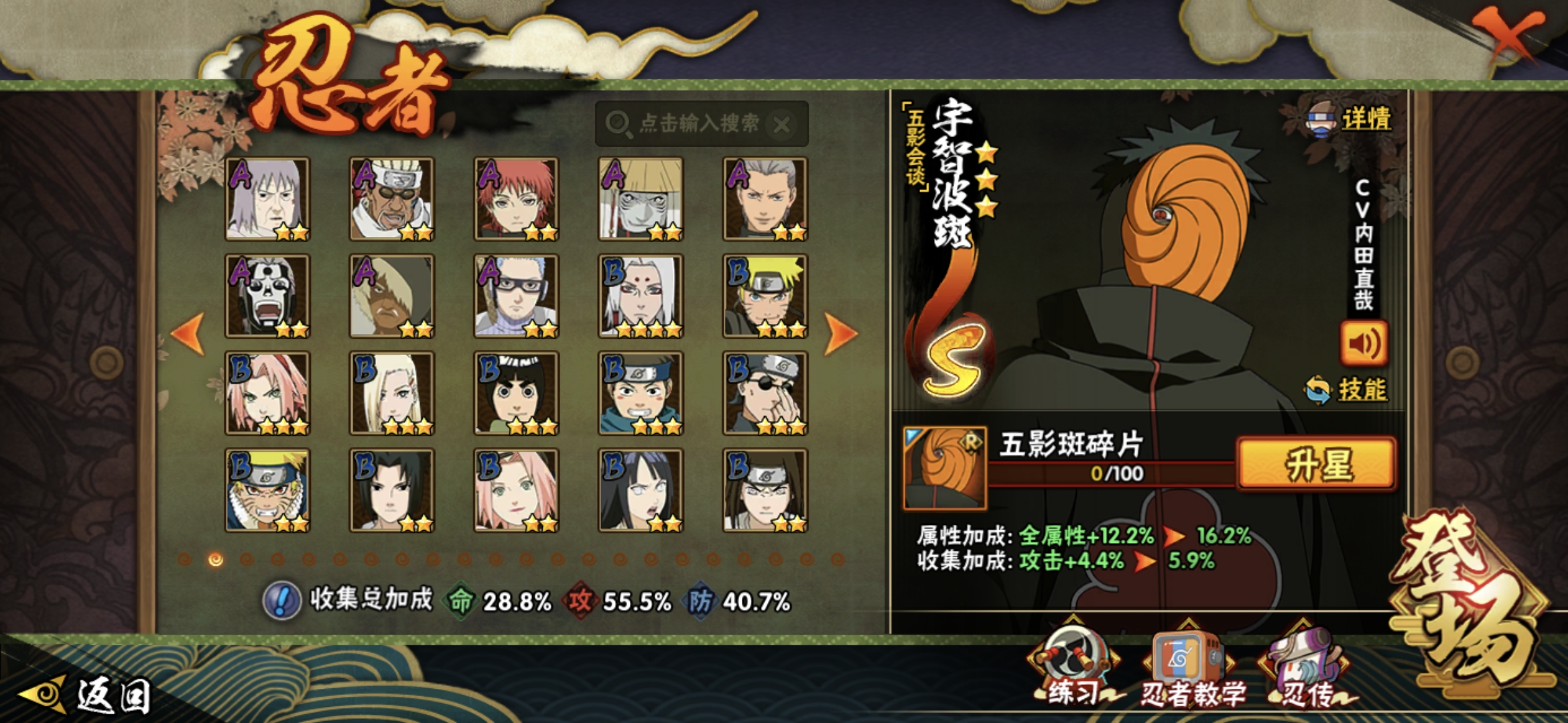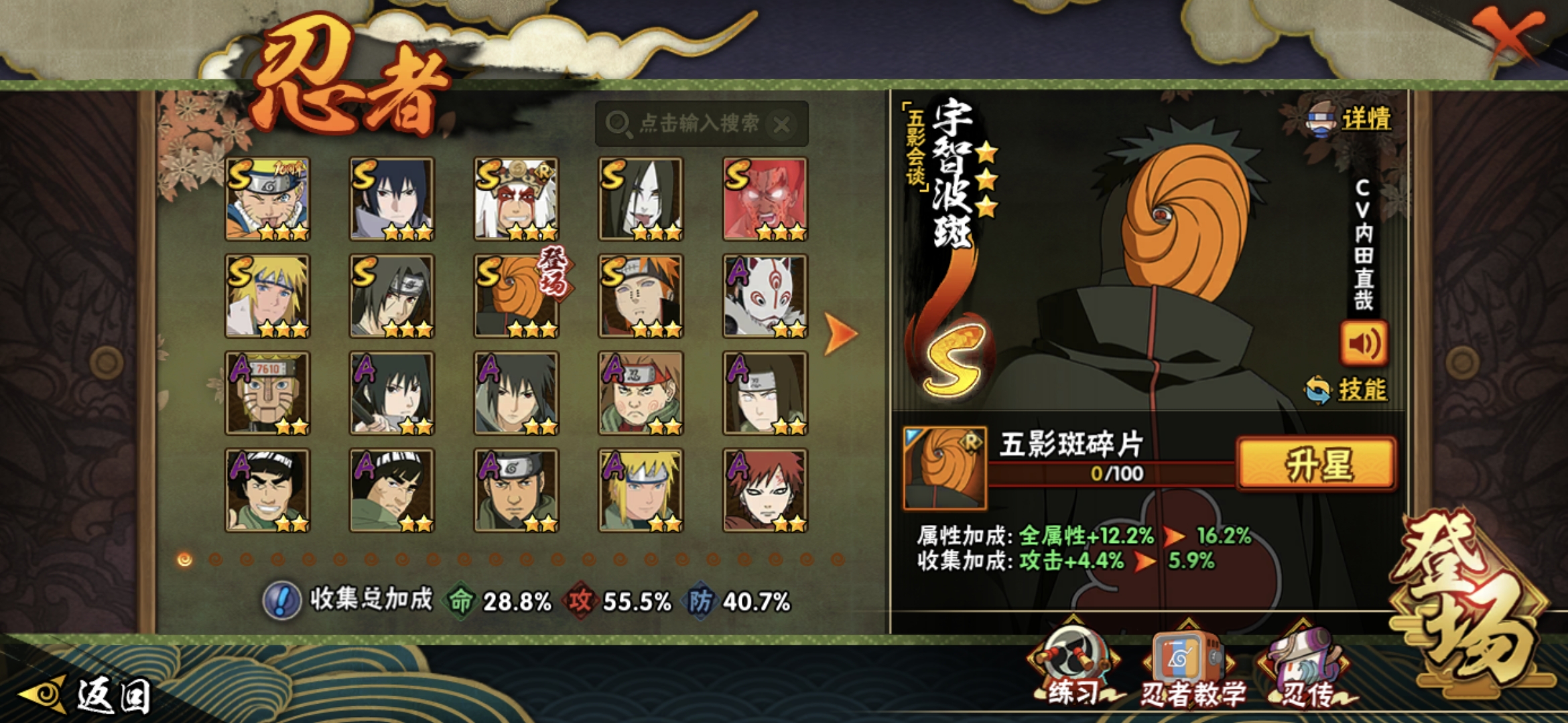 【A级】蝎 宇智波佐助「须佐能乎」 我爱罗「疾风传」 日向宁次「忍界大战」 千代「近松十人卫」 机械鸣人「初始形态」 迈特