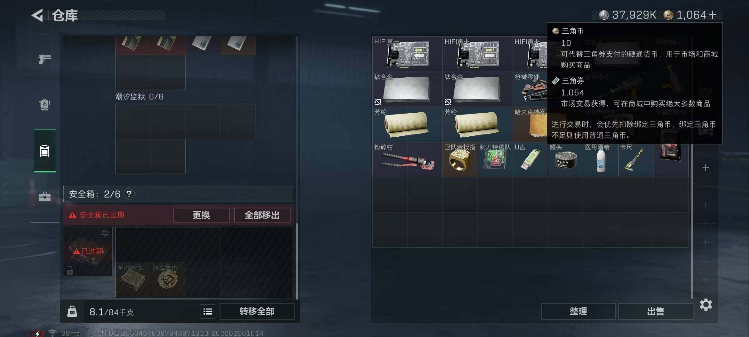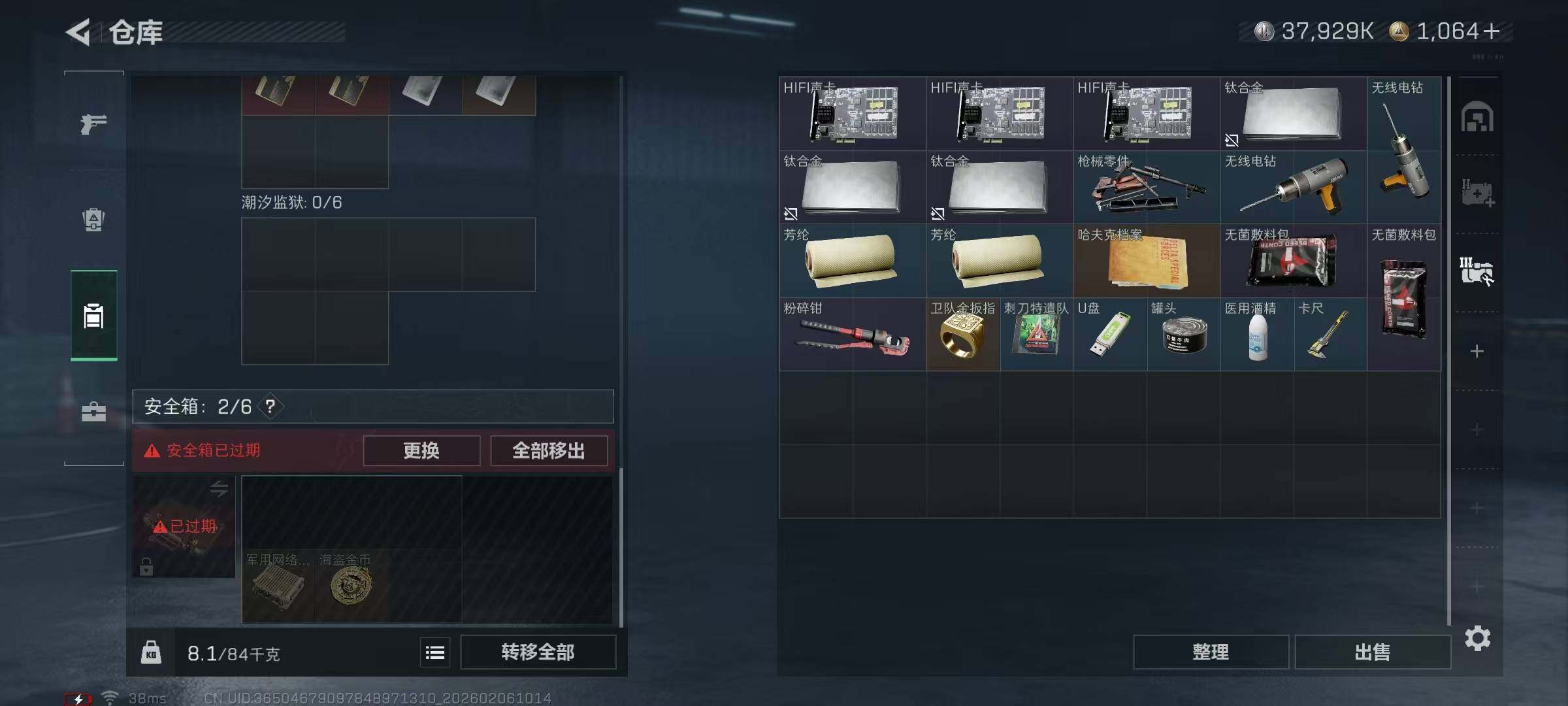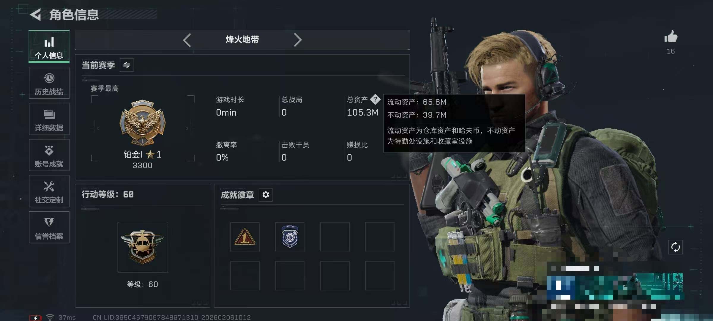 总资产(M):105M/哈夫币(K):37929K