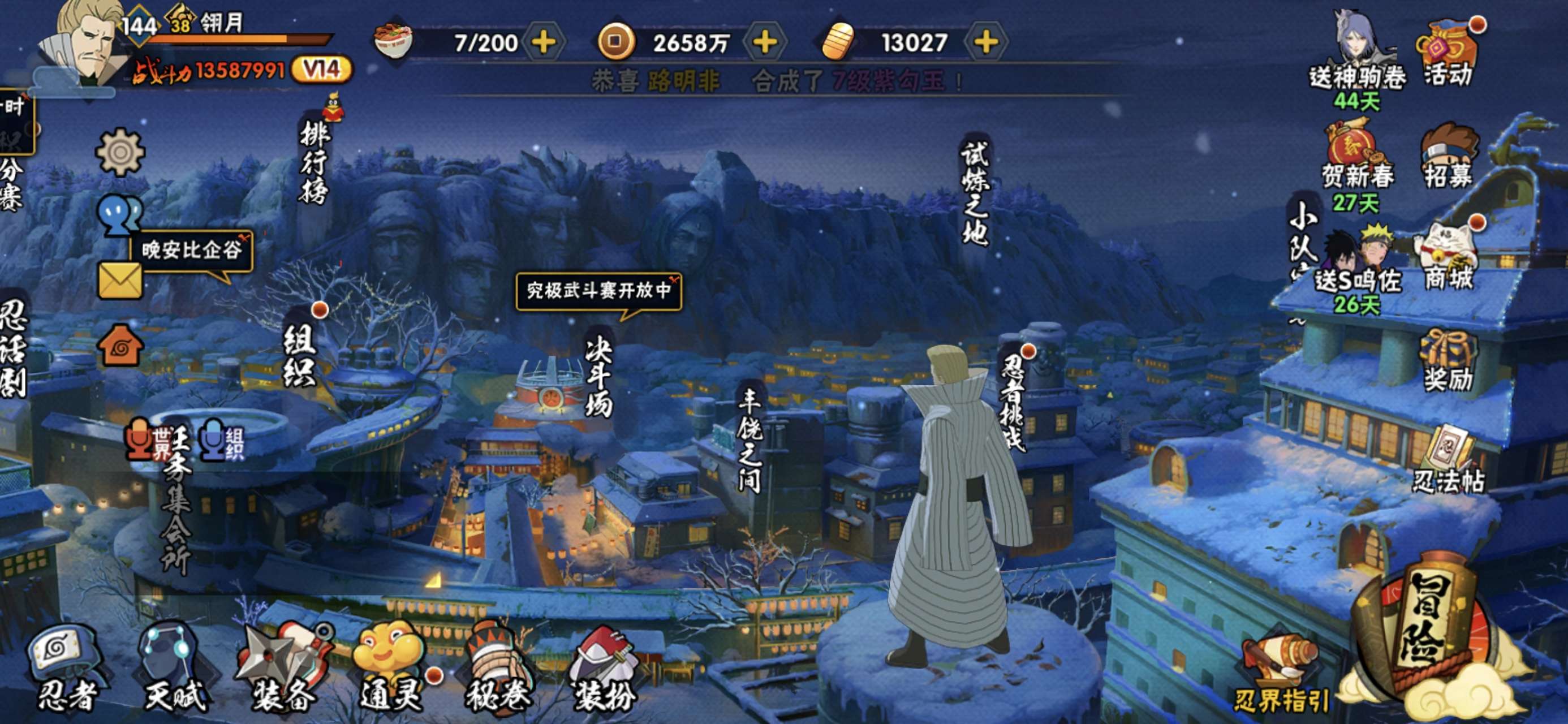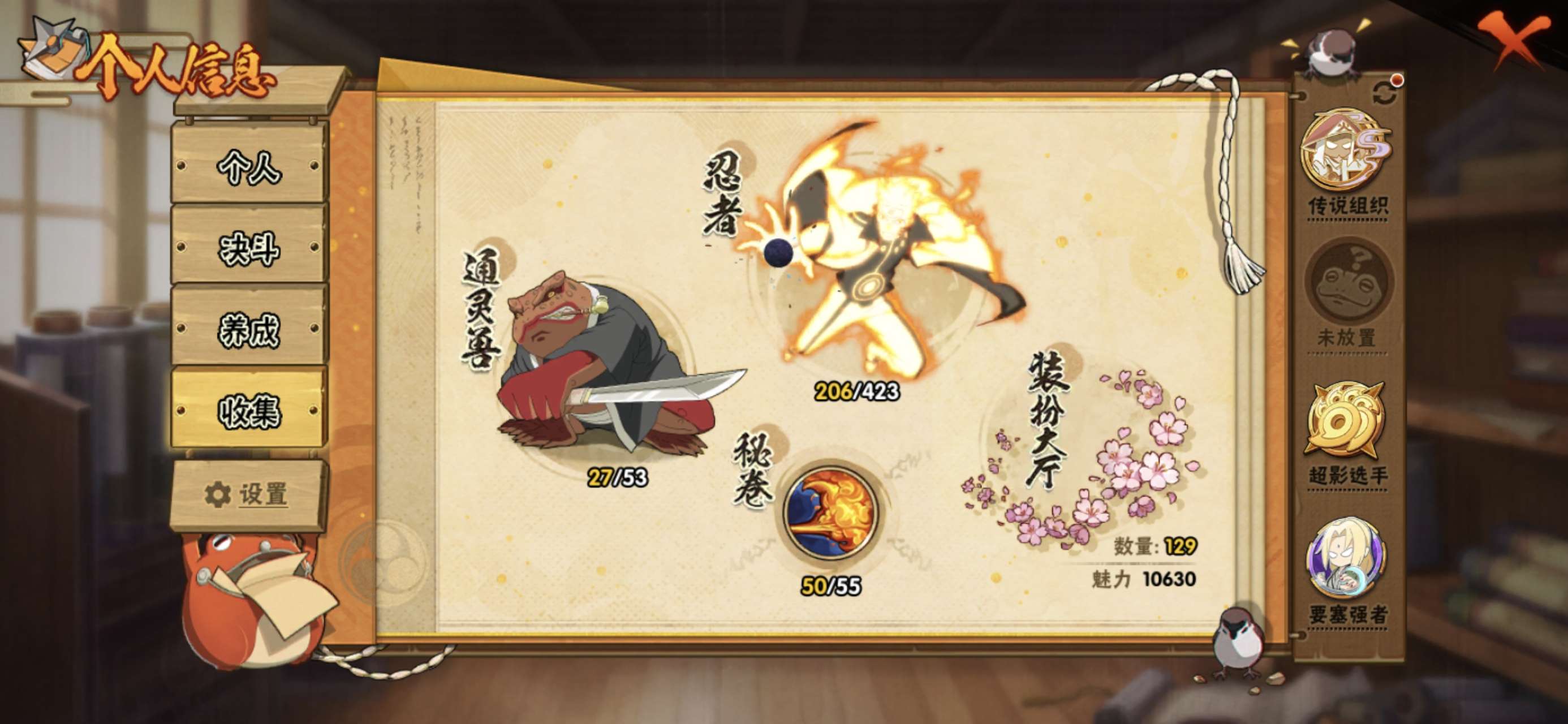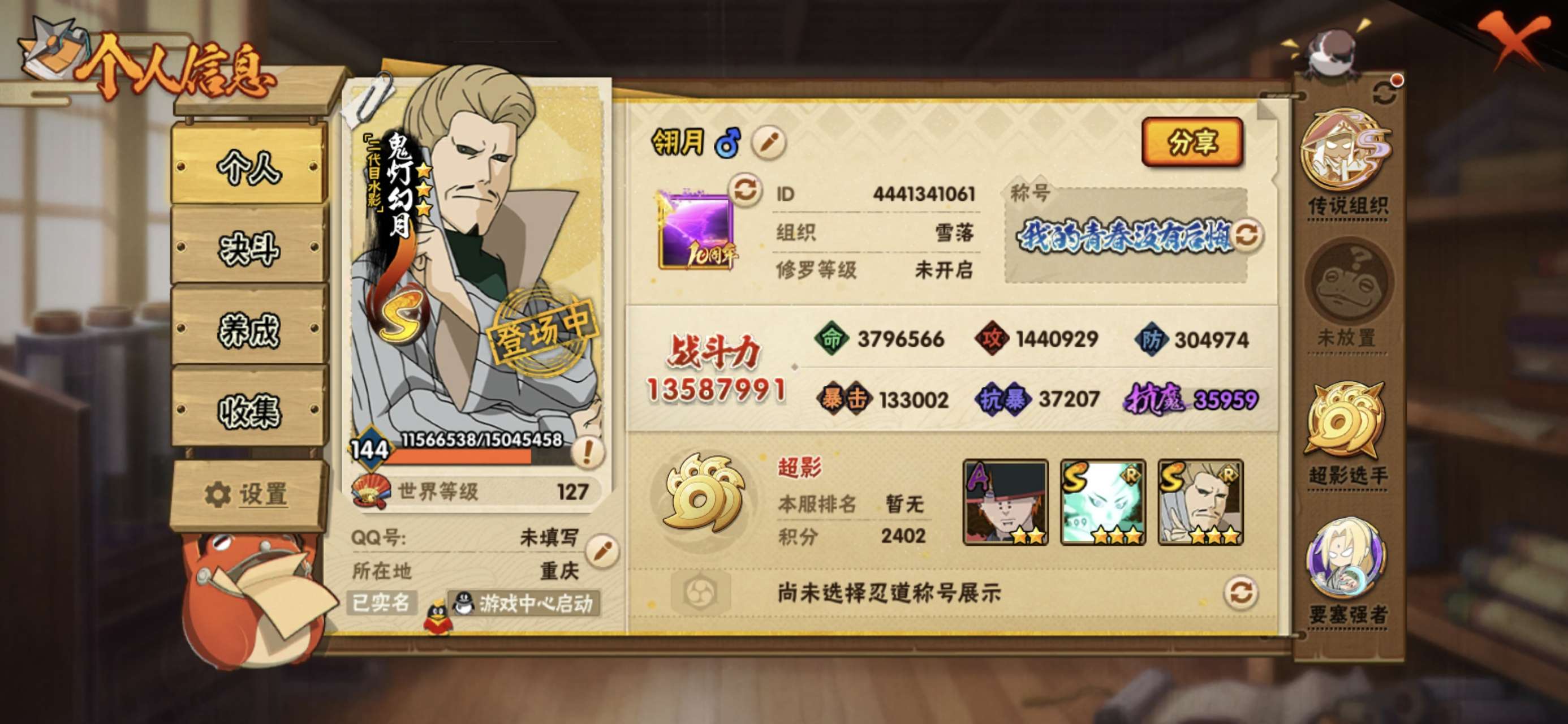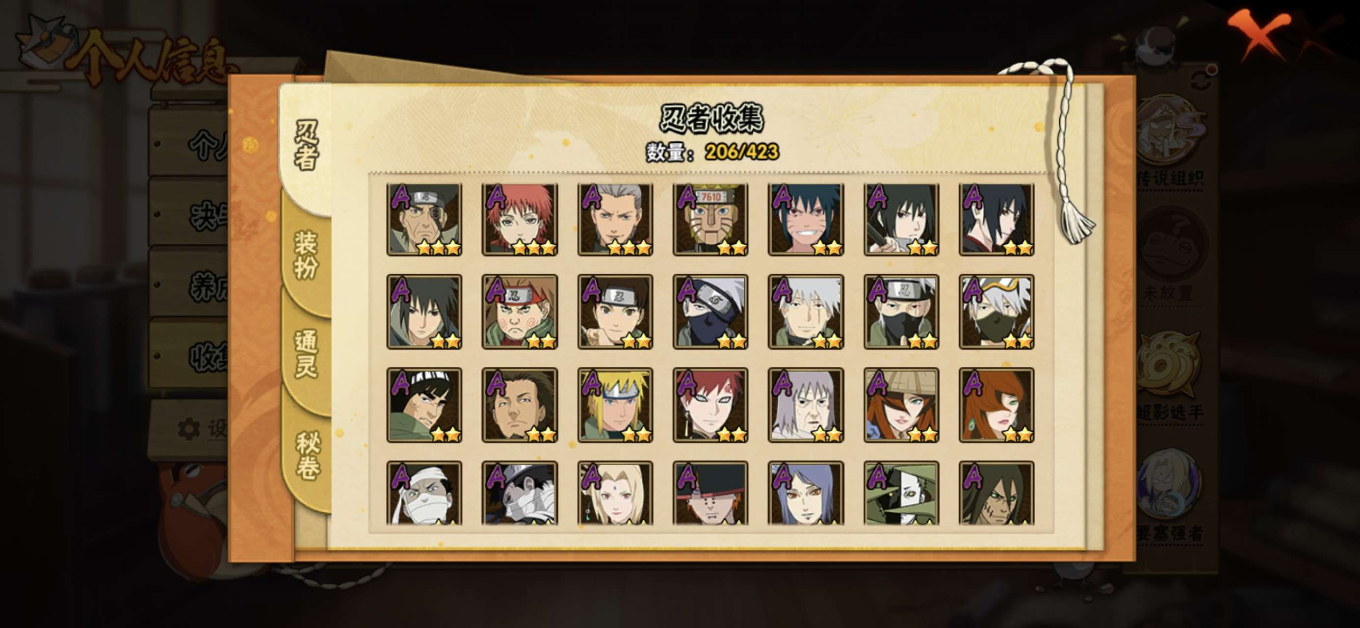 榜二,活柱间39片,仙人自来也89片,加月卡存的还有20000金币,S多198忍者多,98通灵多,已