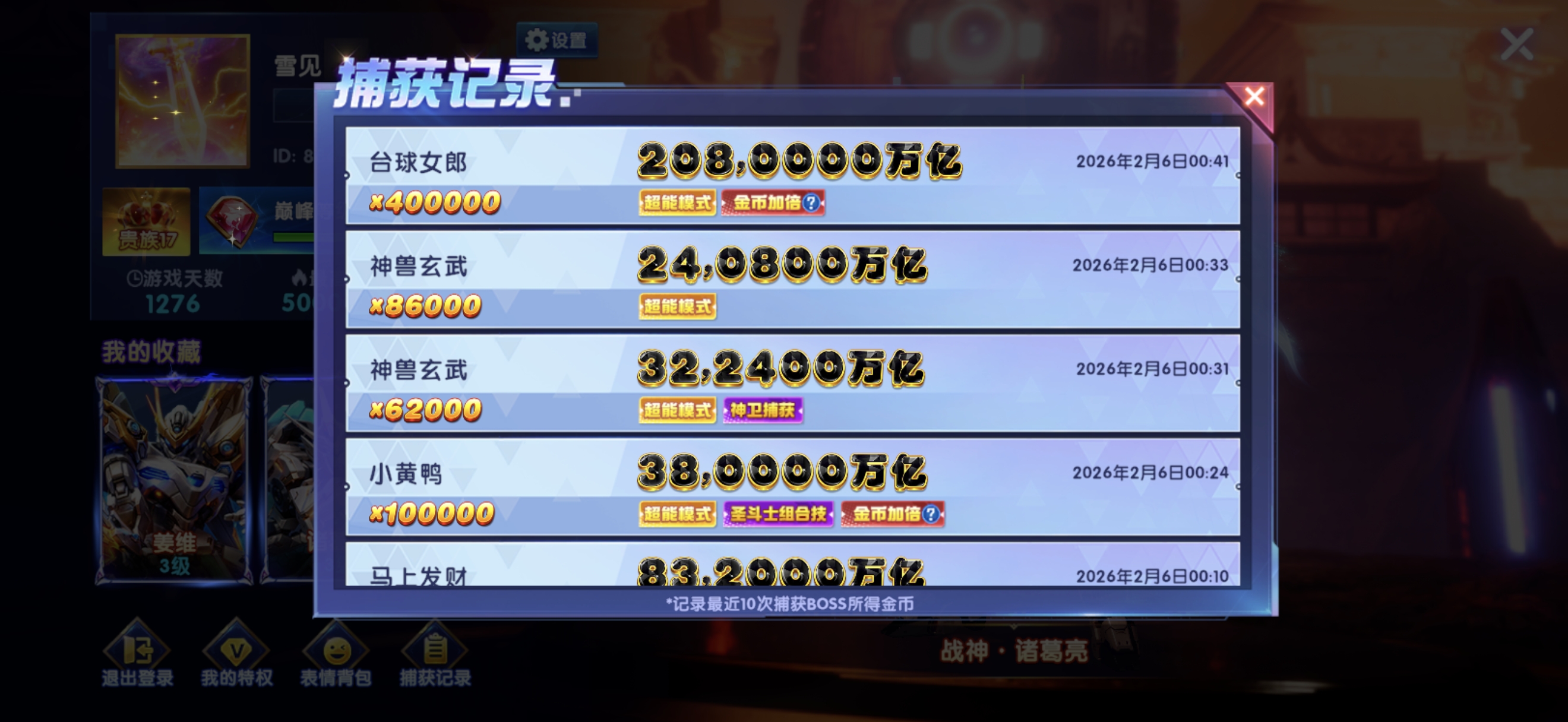最近充钱出的魅魔,爆率高,600兆轻轻松松就打上来了