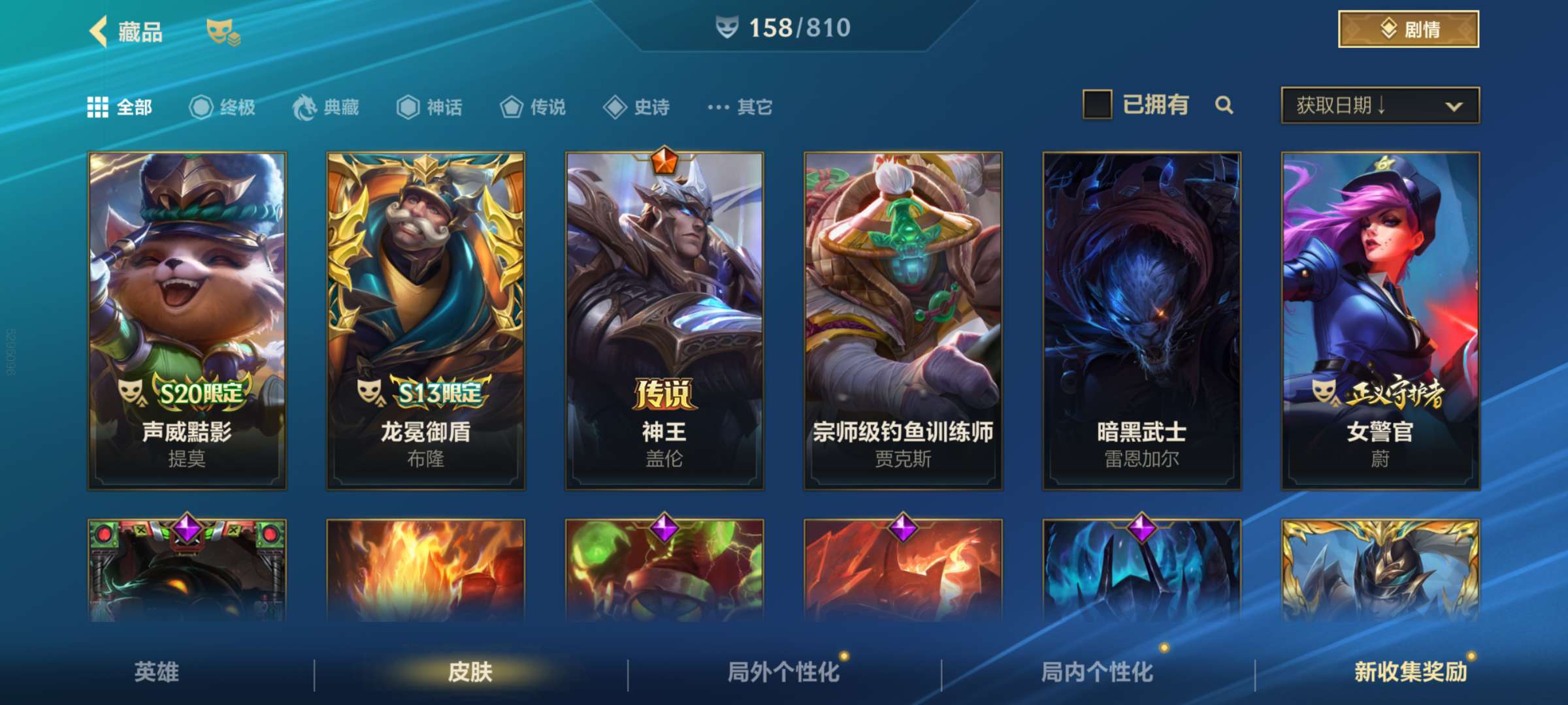 安卓q_211级全英雄158皮肤超凡大师段位