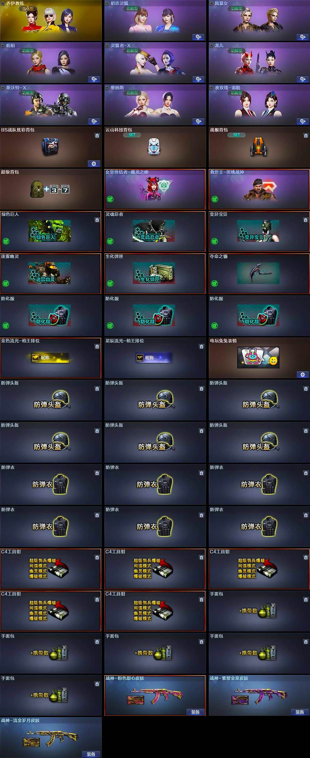 【皮肤】:战神-粉色甜心皮肤,战神-紫绶金章皮肤,战神-流金岁月皮肤,AK47-B-常胜将军-曹操,AK47-B-常胜将军-刘备