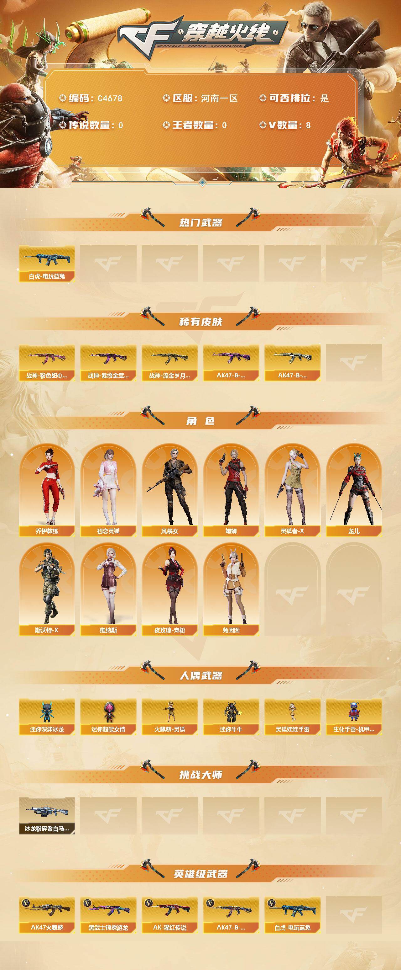 【C4678】河南一区-8V-0王者武器数-0炫金武器数