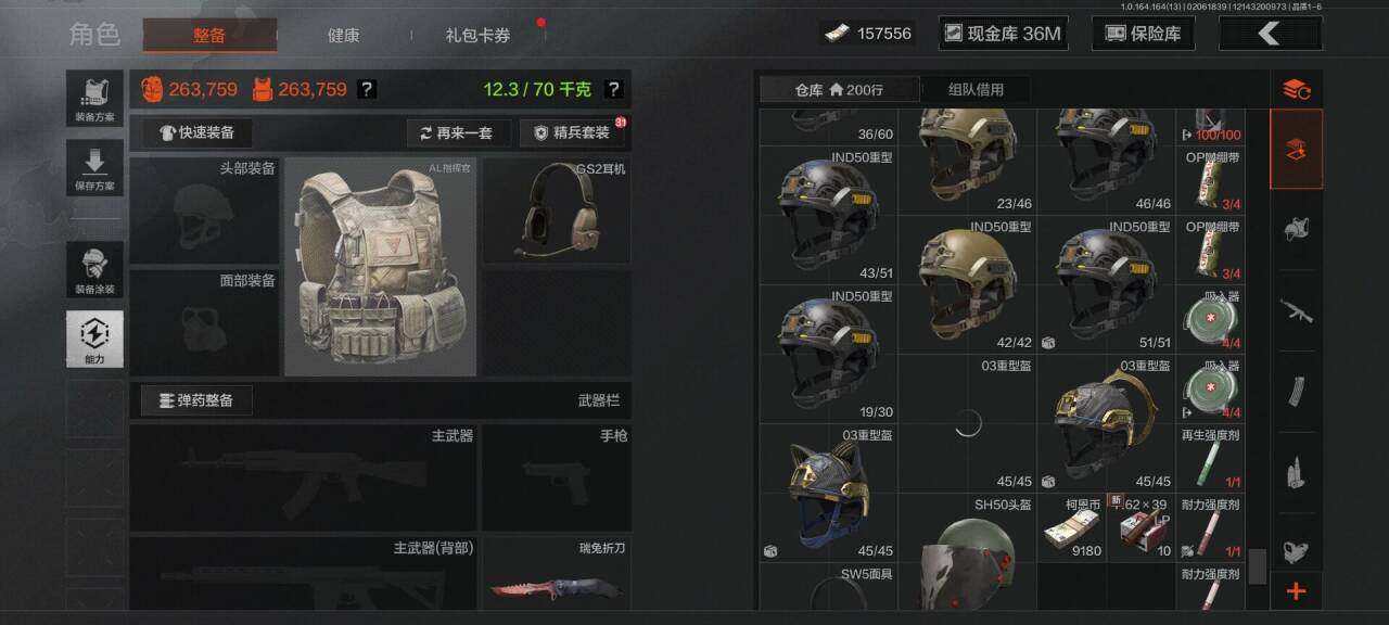 仓库价值(百万):103/瑞兔折刀/工兵铲/火绒塔莉娅/不败坚守作战服
