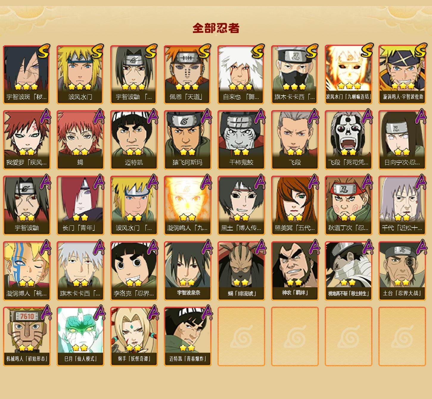 【HYX3571】V5/S忍8/A忍28/忍界大战-日向宁次/疾风传-我爱罗/3星波风水门「九喇嘛连结」/死司凭血-飞段/宇智波鼬/须佐能乎-旗木卡卡西/青年-长门/迈特凯/蝎/天道-佩恩/3星漩涡鸣人·宇智波佐助/五代目水影-照美冥/波风水门/忍界大战-秋道丁次/桃式显现-漩涡博人/忍界大战-李洛克/2星土台「忍界大战」/青年-波风水门/2星蝎「绯流琥」/舞之豪杰-自来也/2星桃地再不斩「秽土转生」/四代目土影-黑土/2星纲手「妖怪奇谭」/飞段/2星神农「羁绊」/猿飞阿斯玛/2星宇智波泉奈/幻