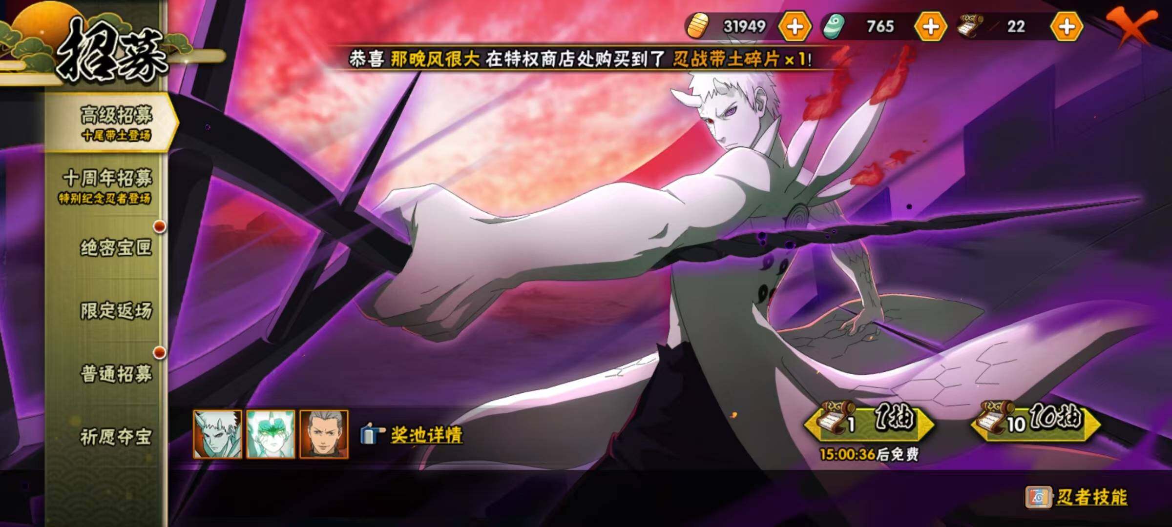 V6/战力310W/S忍4/A忍9/舞之豪杰-自来也/3星宇智波带土「十尾人柱力」