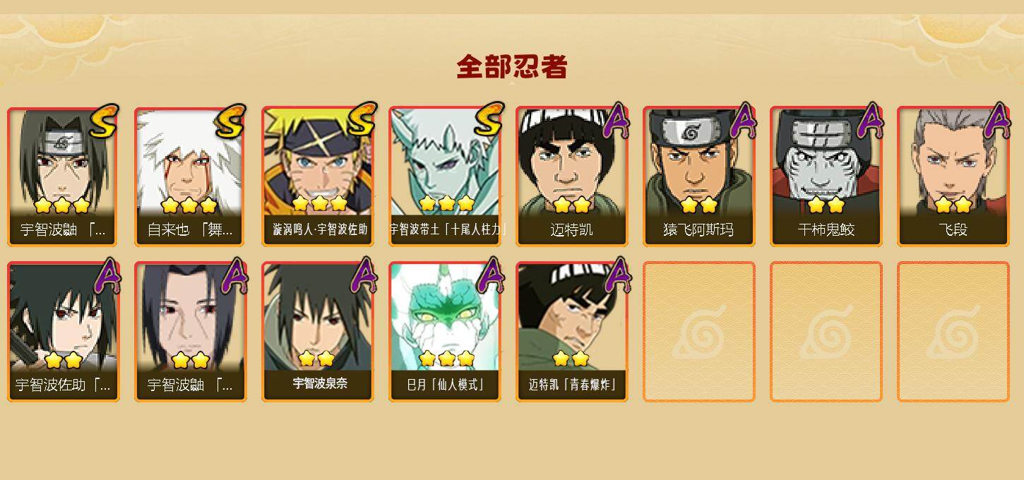 【HYYT217】V6/战力310W/S忍4/A忍9/舞之豪杰-自来也/3星宇智波带土「十尾人柱力」/迈特凯/飞段/3星漩涡鸣人·宇智波佐助/猿飞阿斯玛/夏日限定-宇智波鼬/2星宇智波泉奈/干柿鬼鲛/2星迈特凯「青春爆炸」/须佐能乎-宇智波佐助/3星巳月「仙人模式」/须佐能乎-宇智波鼬