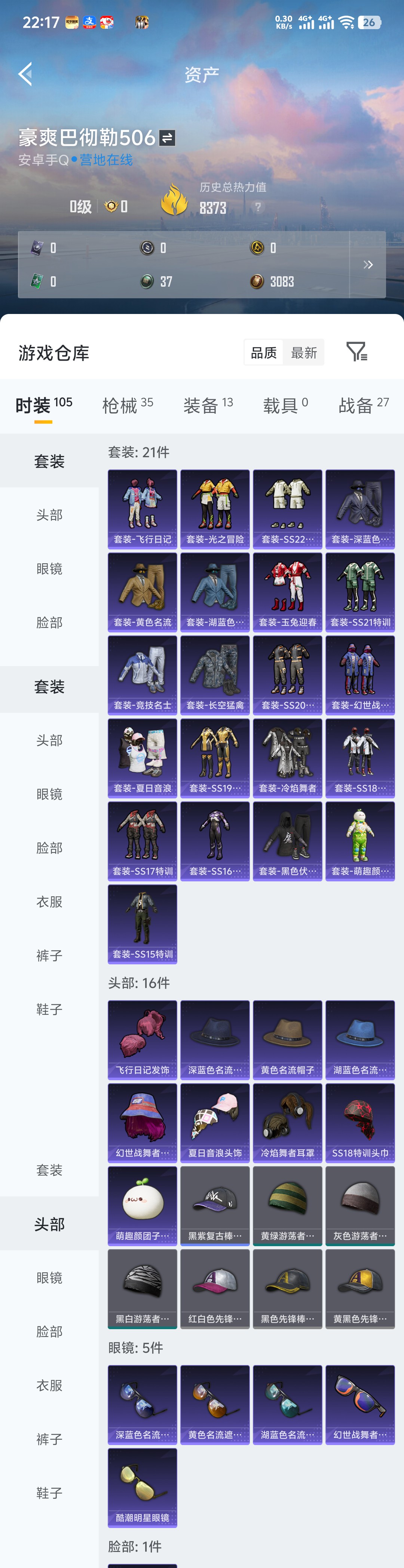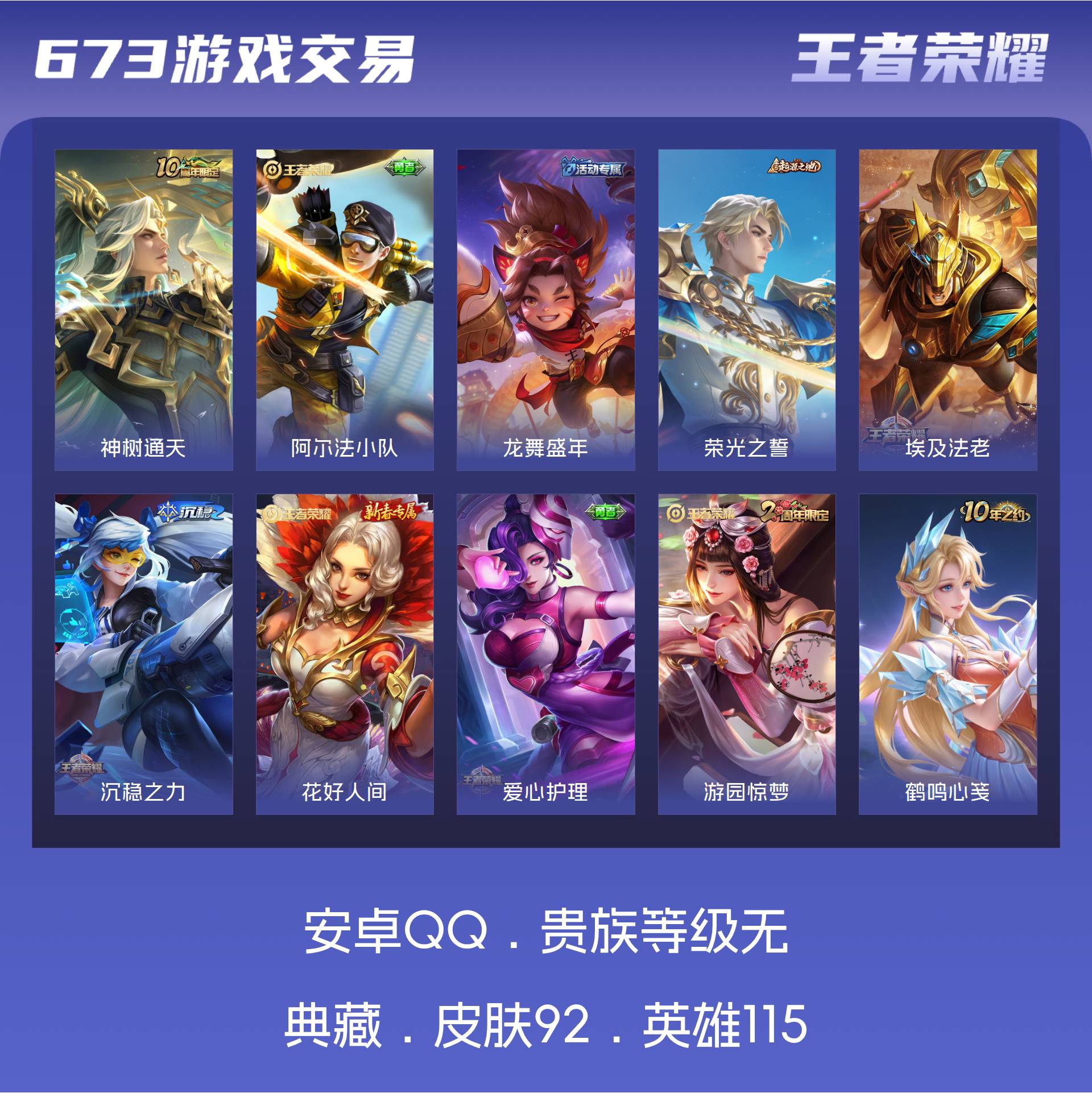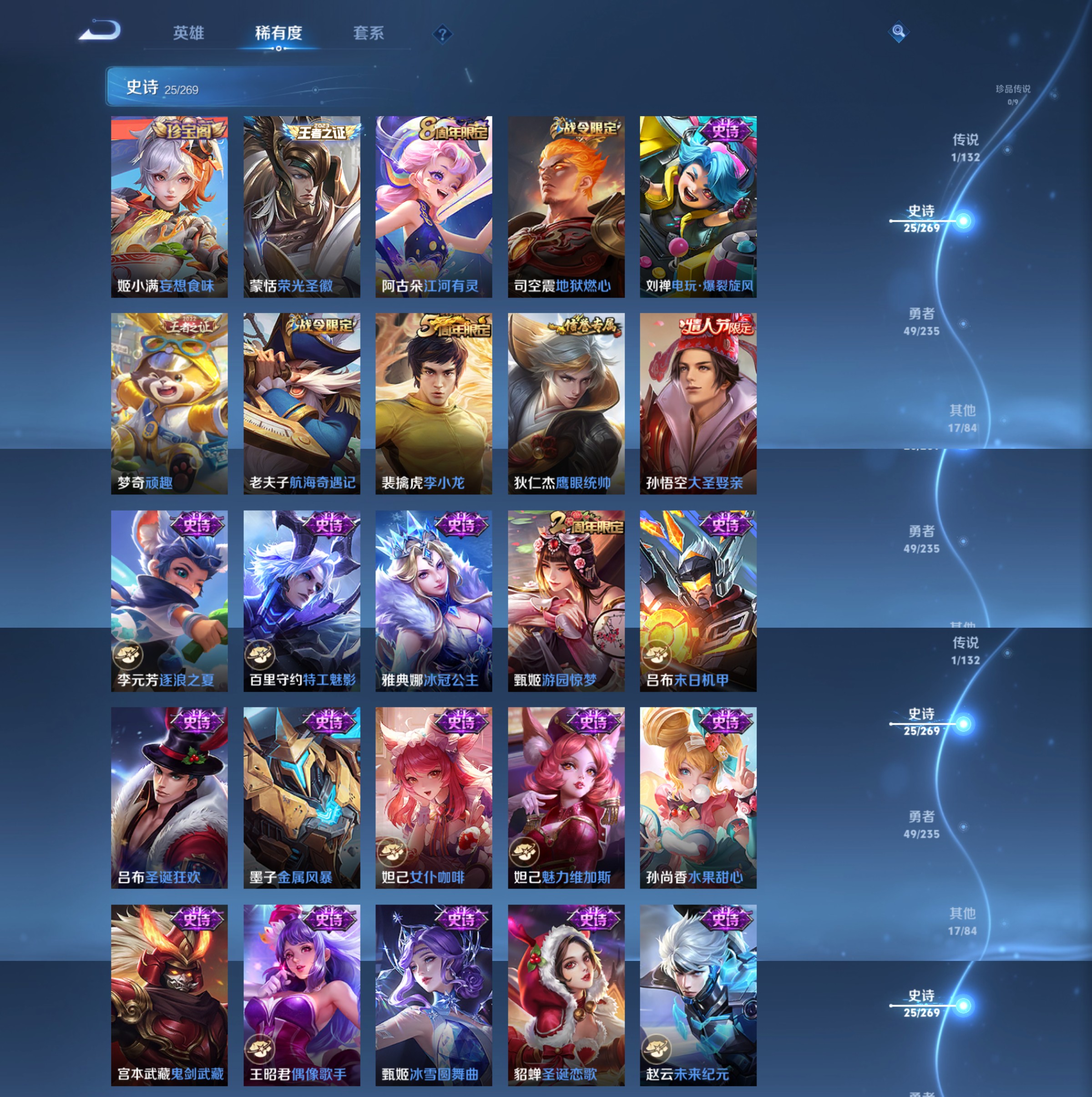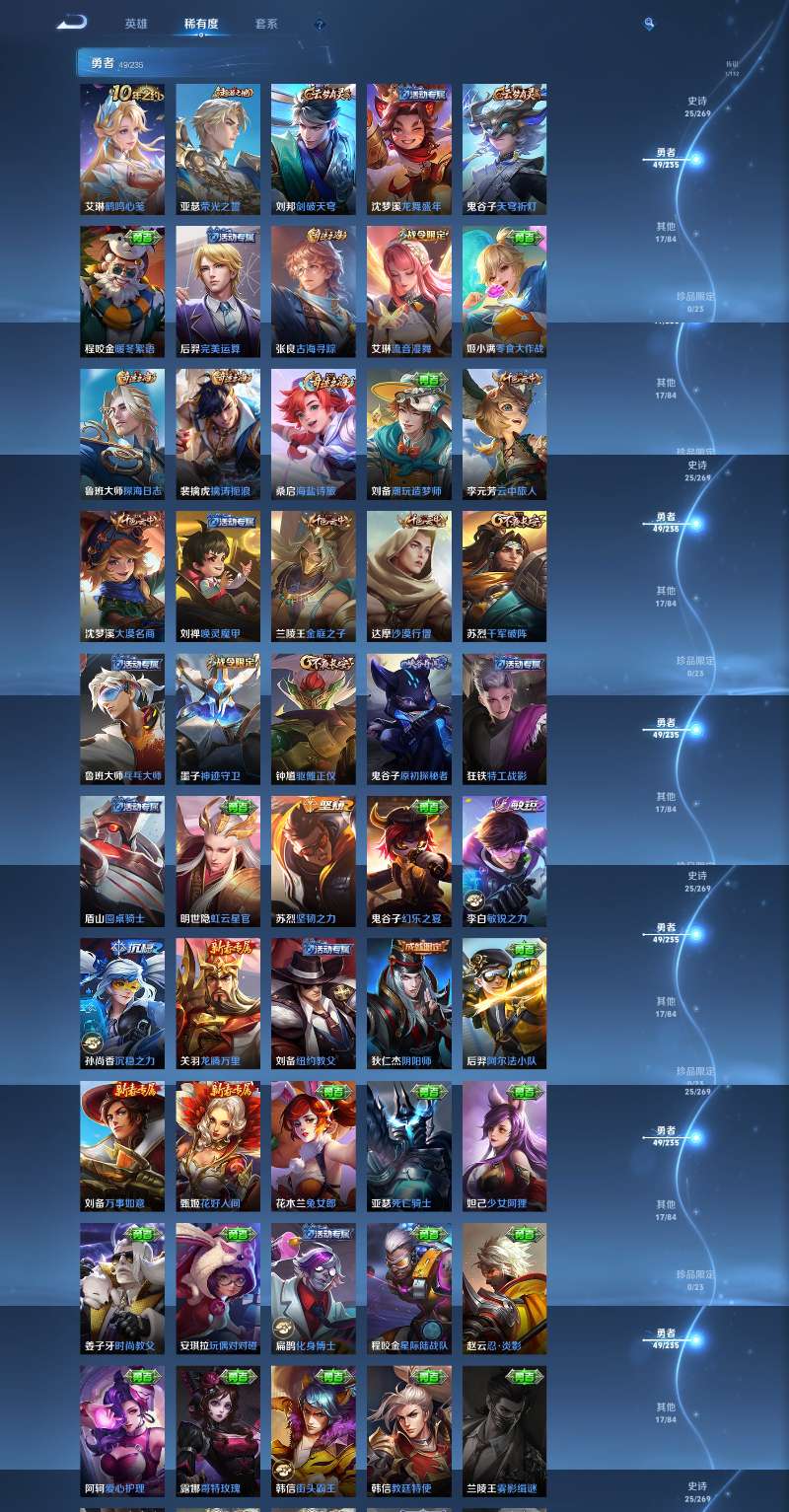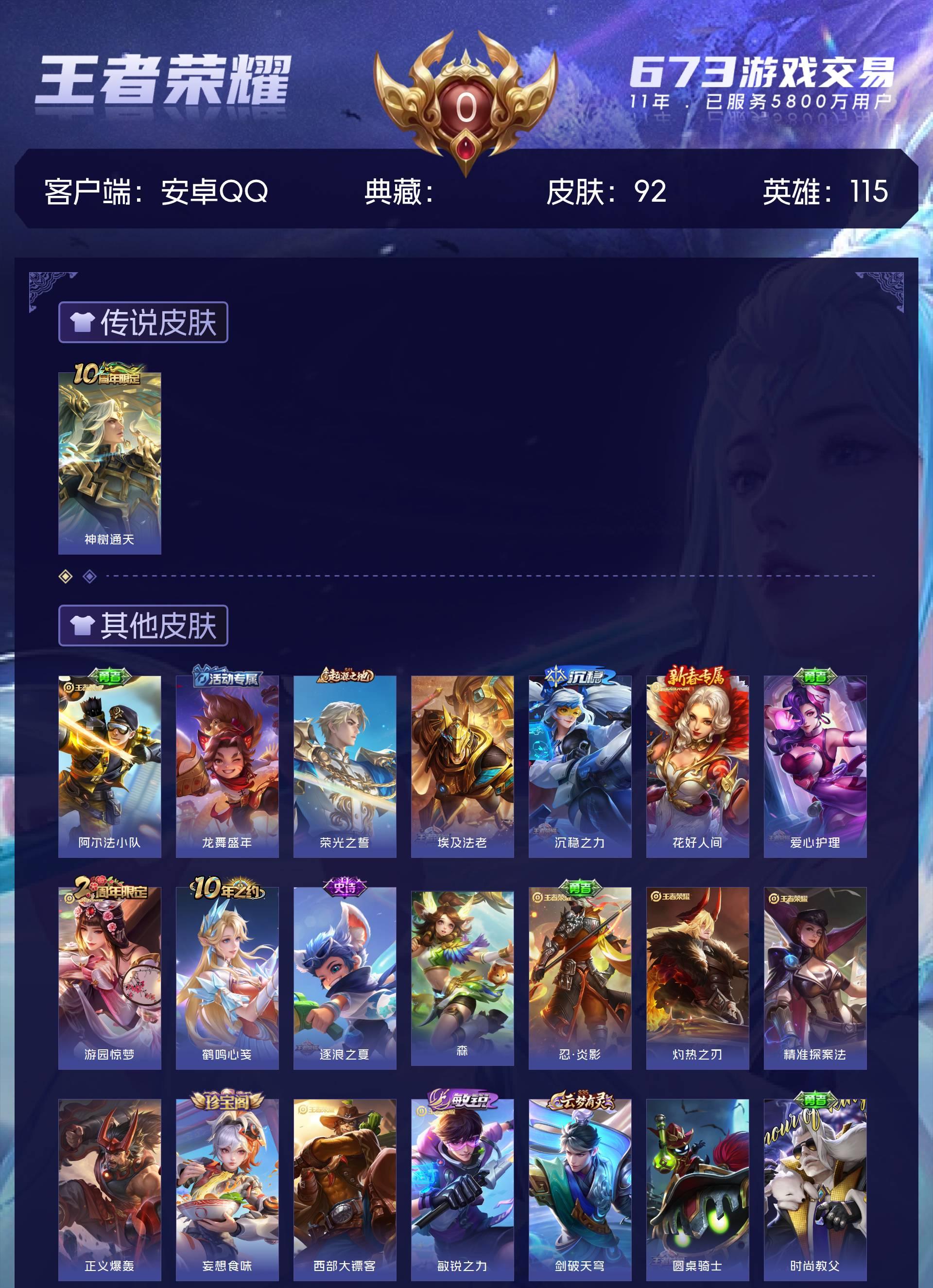 皮肤92 英雄115 尊贵铂金 传说1 其他皮肤97