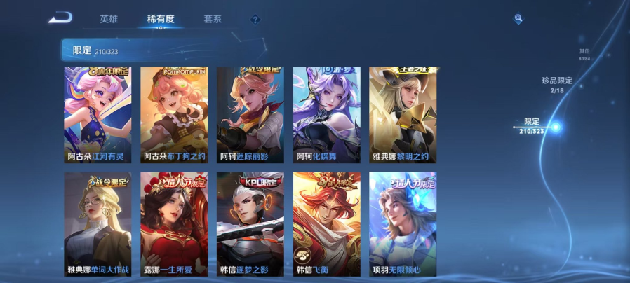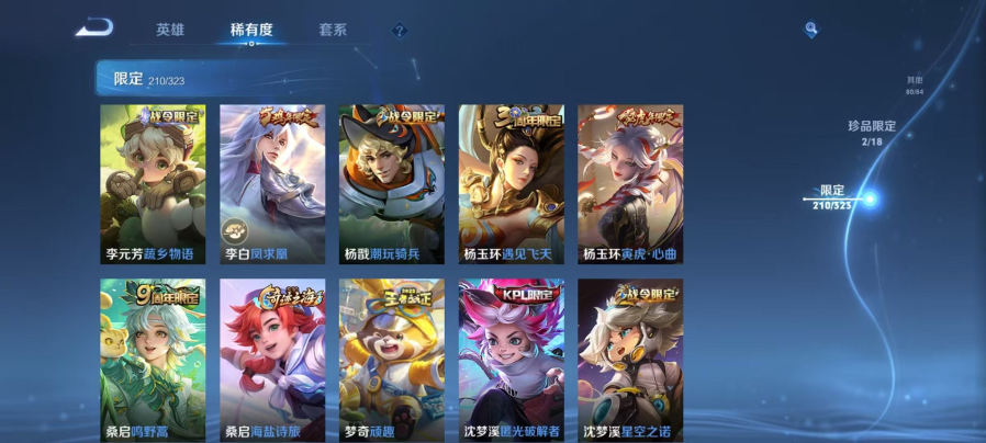 可二次【V10 512皮肤5水晶1无双1珍品6星元68传说