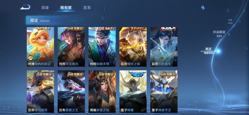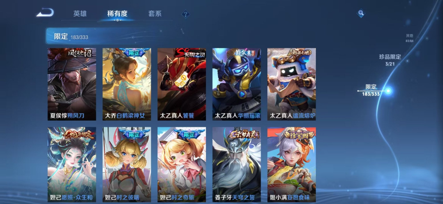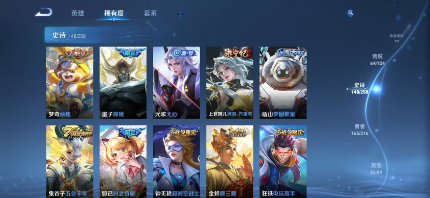 【V10 468皮肤65传说5水晶2星元2珍品2天幕1金标