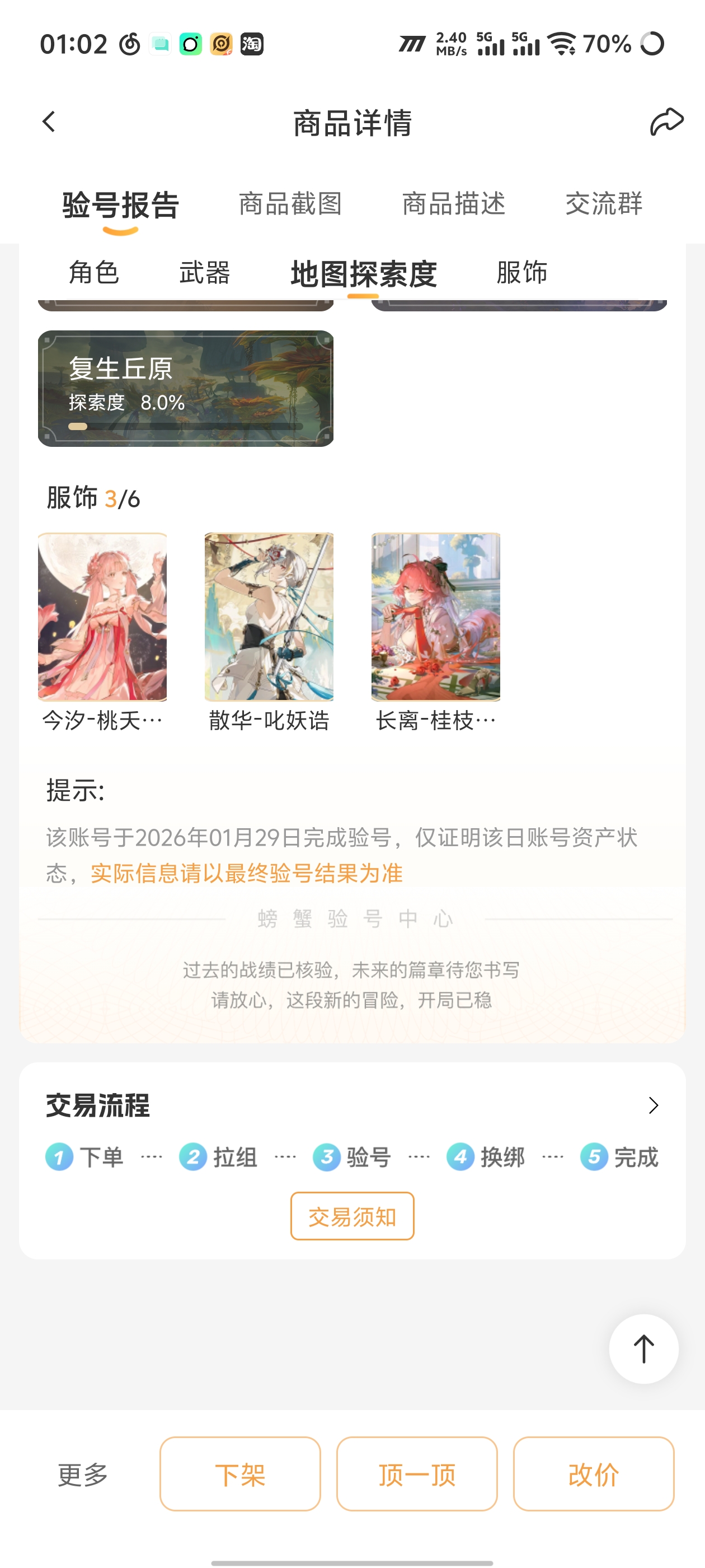 换绑过户成功后,客服将账号资料发送给买家确认,无误后确认收货,交易完成。
