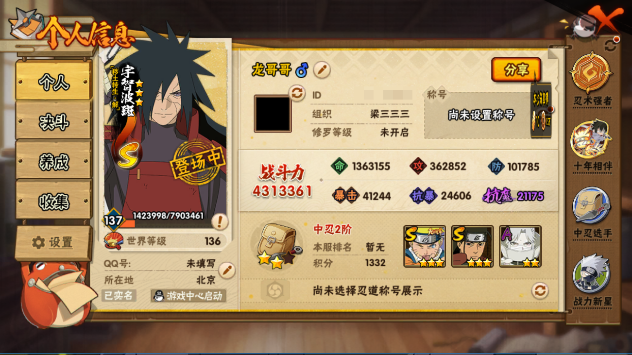 所在区服: