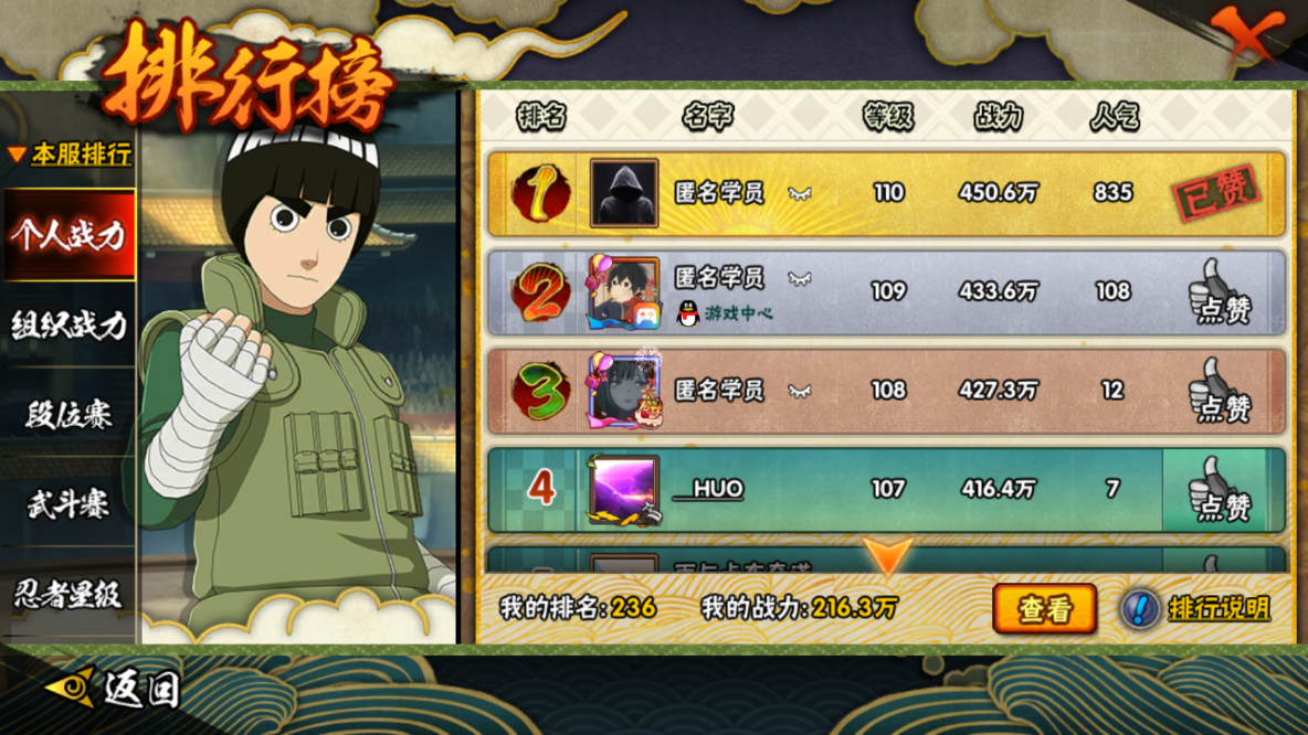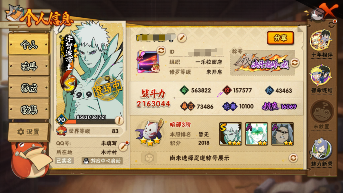 (可转苹果)216w战力六道带土3S+298点券鸡佐8A战力