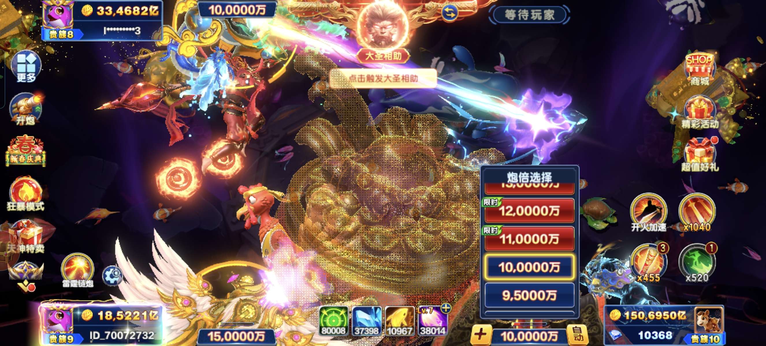 急售准V11永久副炮多天神150万亿,实炮10,虚炮20,换绑方。可买断可拿分。分200,号200。