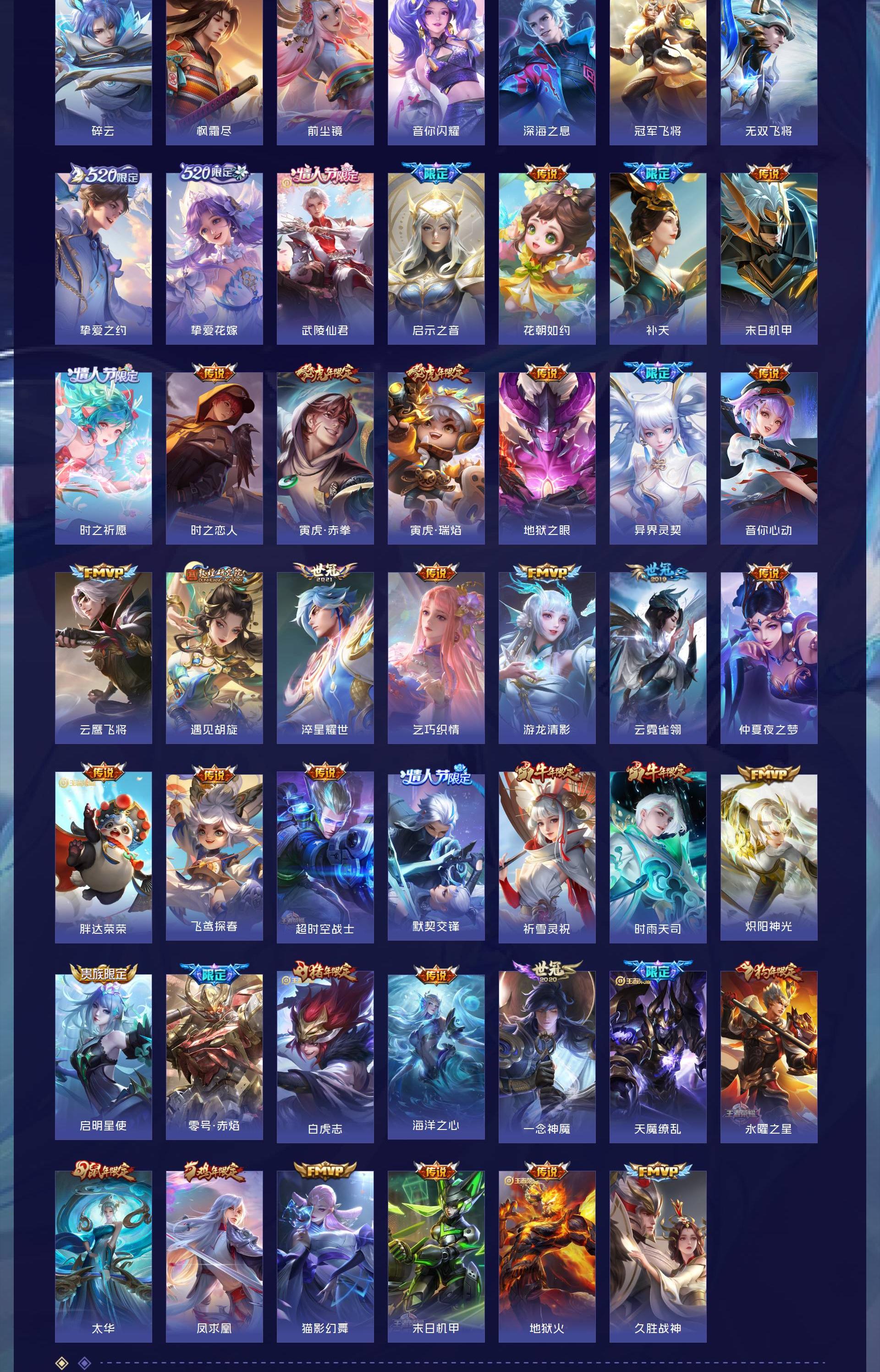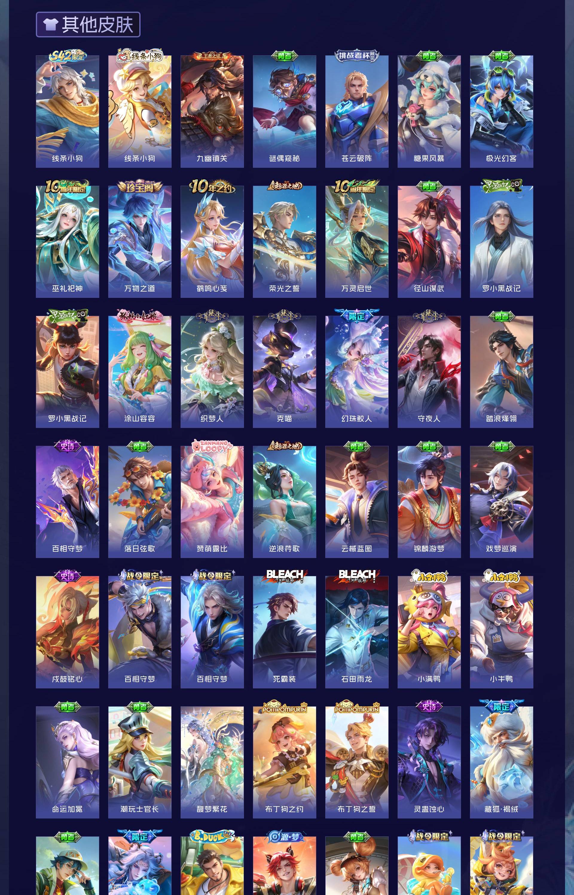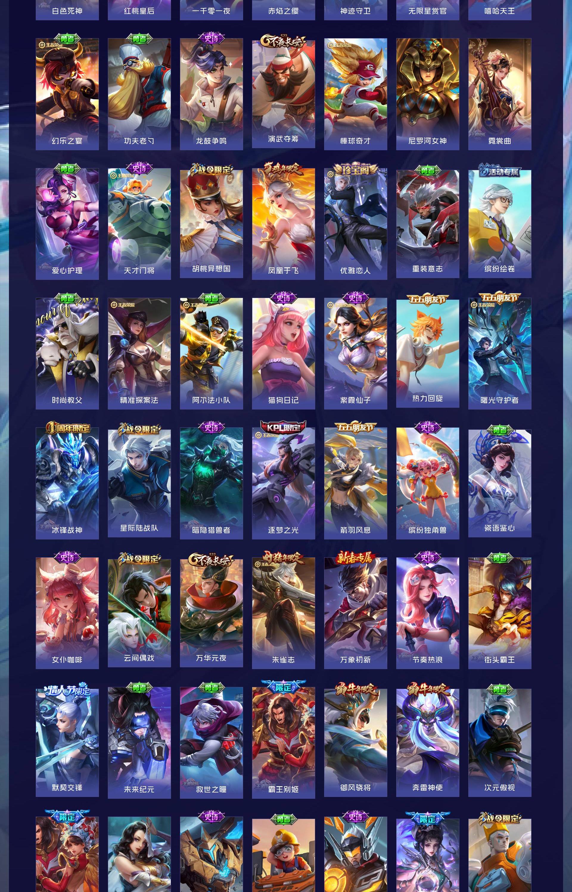 无双贵族 皮肤714 英雄129 至尊星耀 荣耀典藏7 珍品无双1 无双皮肤10 珍品传说9 星传说13 传说126 其他皮肤567