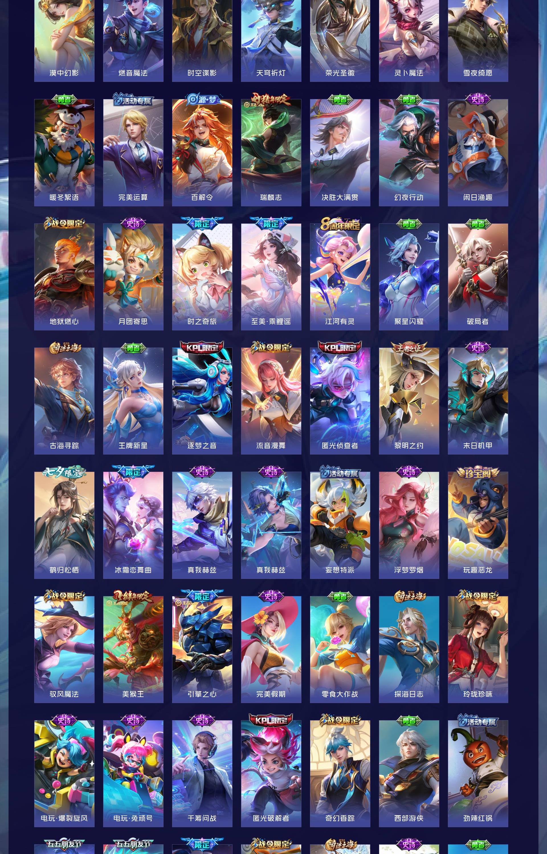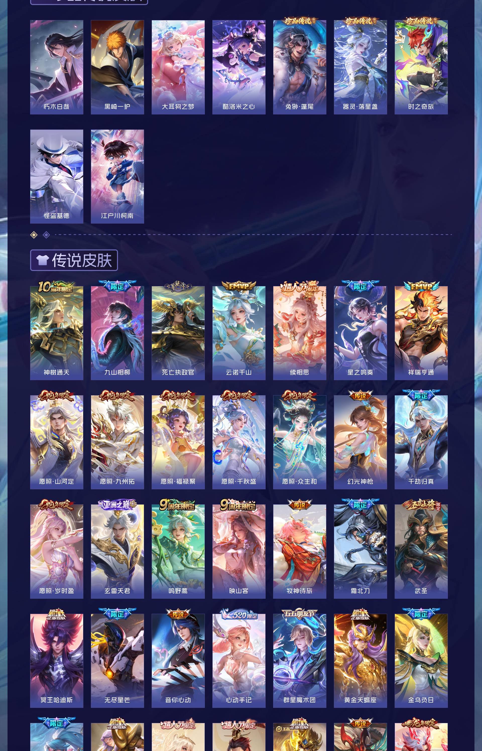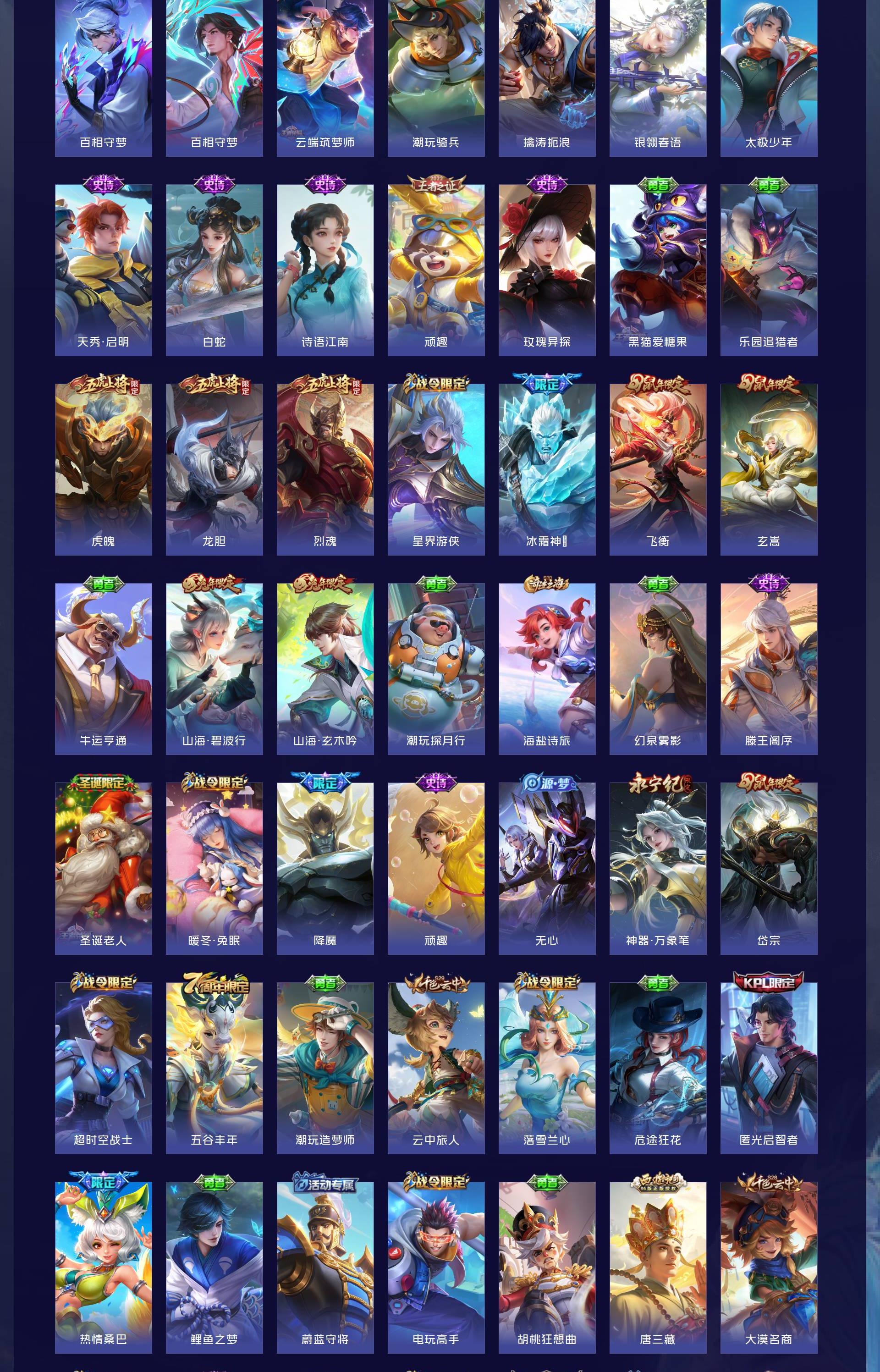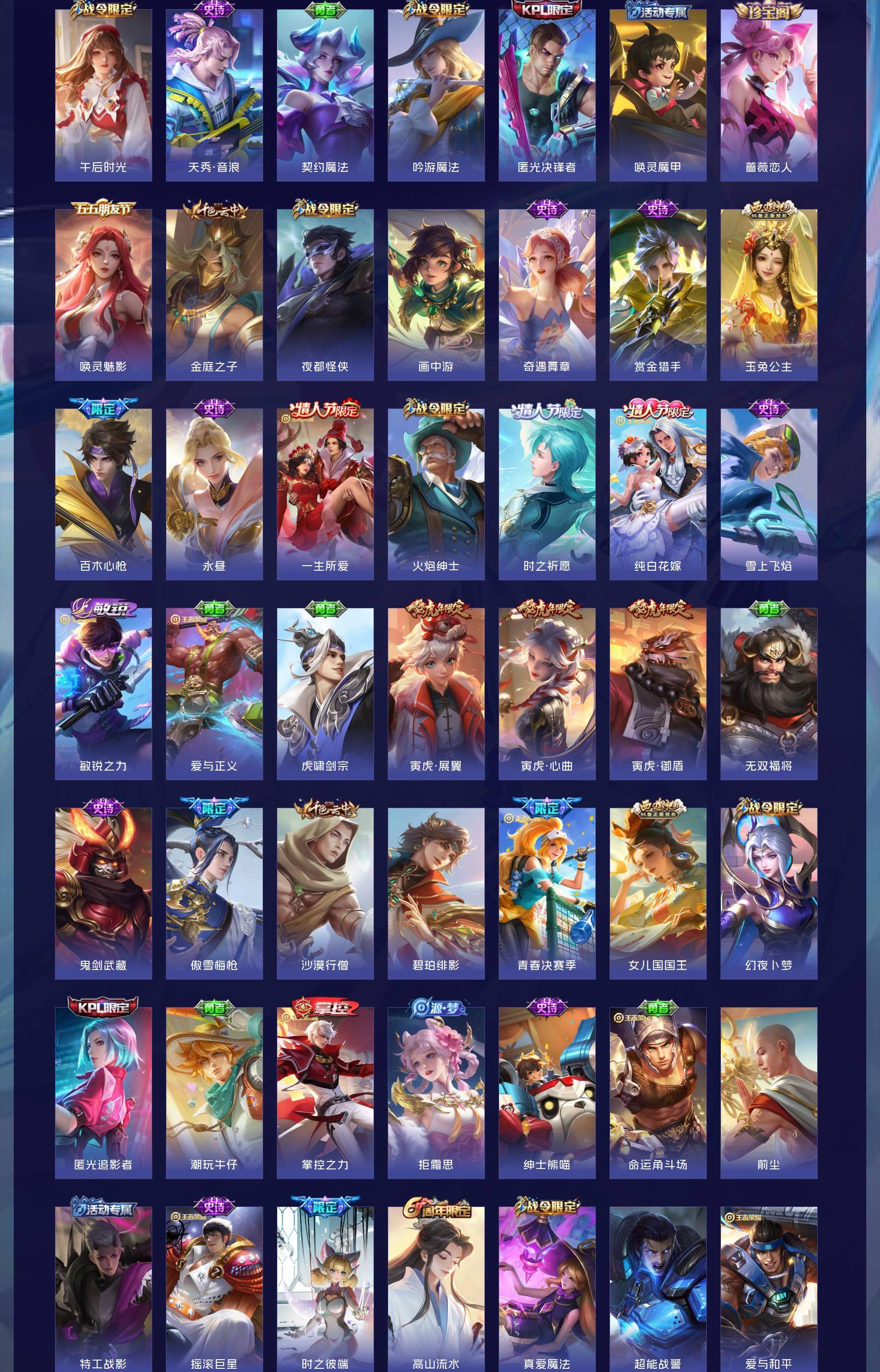 无双贵族 皮肤714 英雄129 至尊星耀 荣耀典藏7 珍品无双1 无双皮肤10 珍品传说9 星传说13 传说126 其他皮肤567