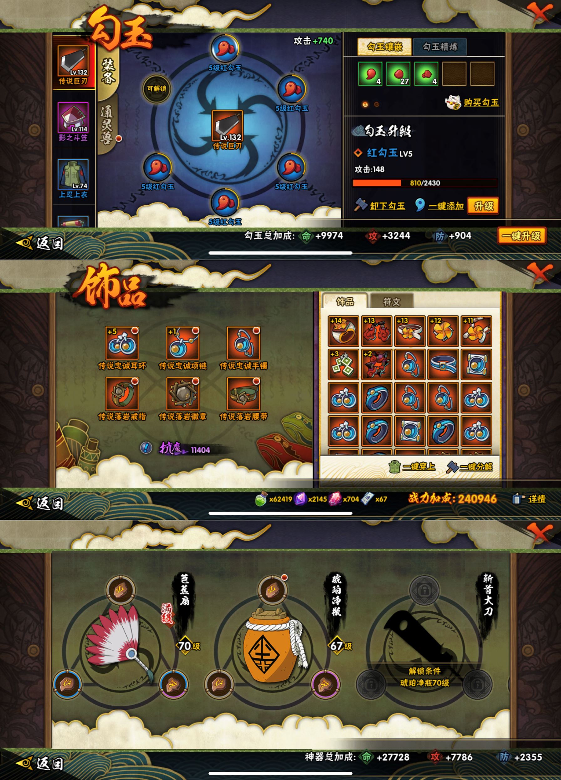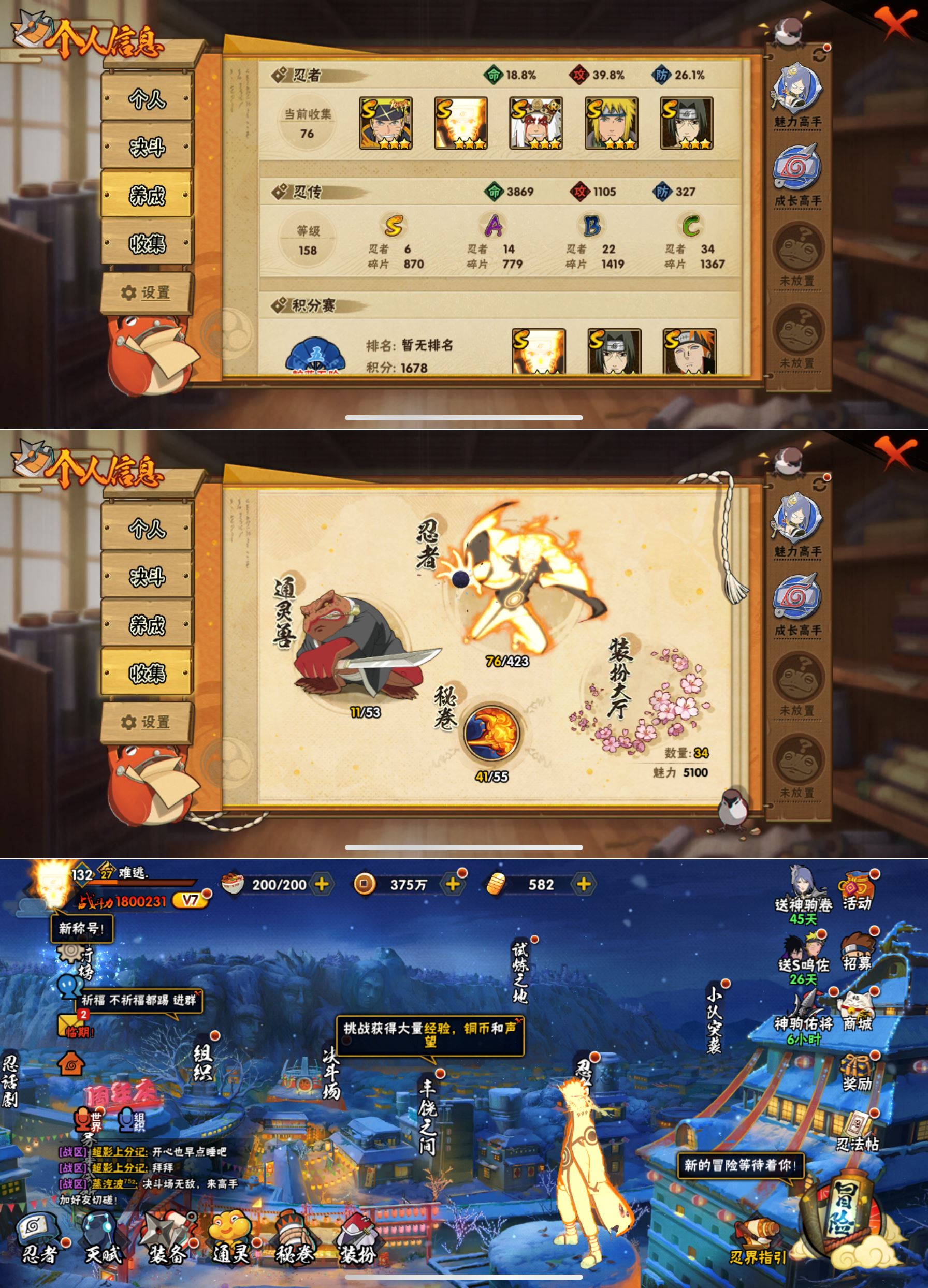 WLHY535【区服】苹果Q【等级】132【S级数量】6【A级数量】14【B级数量】22【C级数量】34【S级】漩涡鸣人「九喇嘛连结」 漩涡鸣人·宇智波佐助 佩恩「天道」 波风水门 宇智波鼬「须佐能乎」 自来也「舞之豪杰」【A级】迈特凯「青春爆炸」 宇智波佐助「须佐能乎」 长门「青年」 机械鸣人「初始形态」 我爱罗「疾风传」 奇拉比「忍界大战」 宇智波泉奈 佩恩·六道「漂泊浪客」 干柿鬼鲛 卑留呼「火之意志继承者」 波风水门「新春限定」 长十郎「六代目水影」 漩涡博人「桃式显现」 迈特凯【B级】