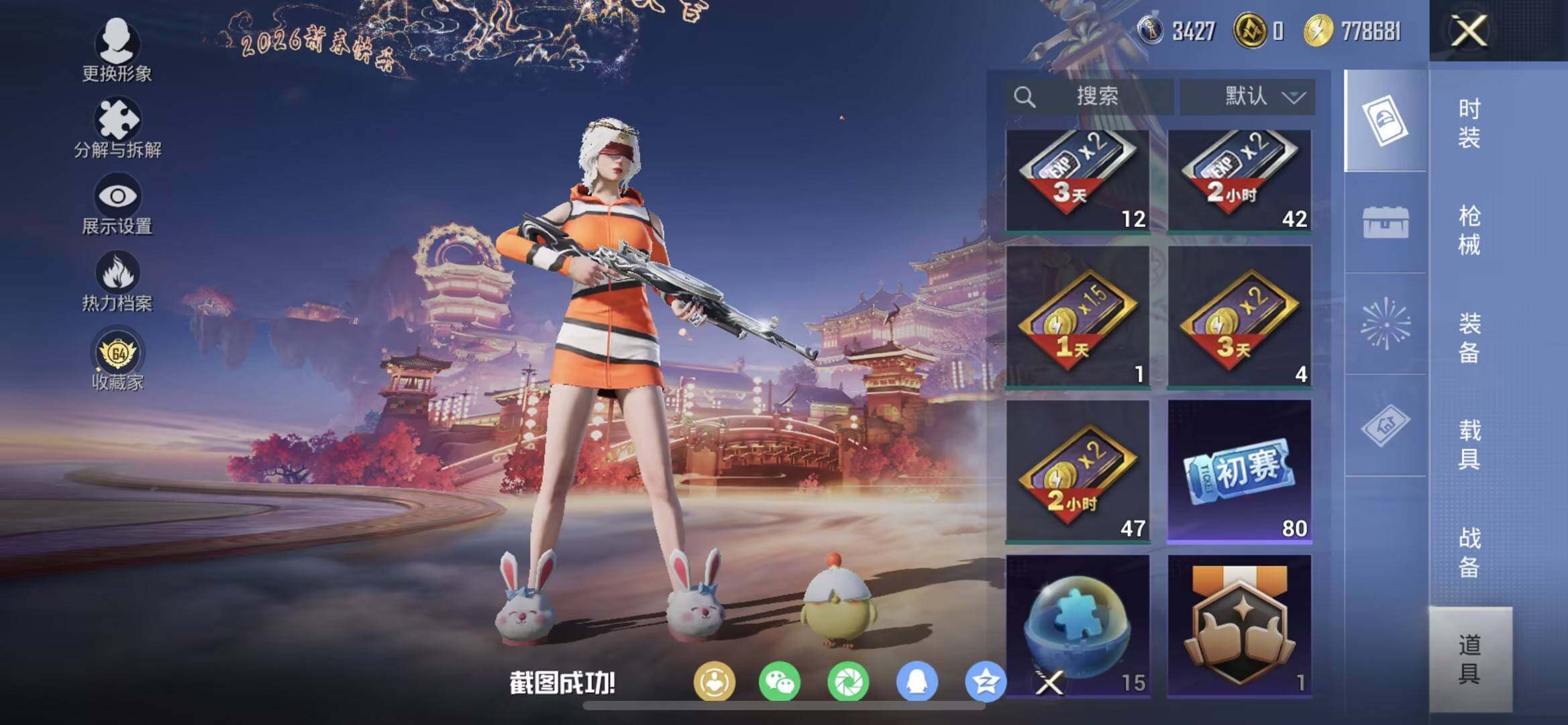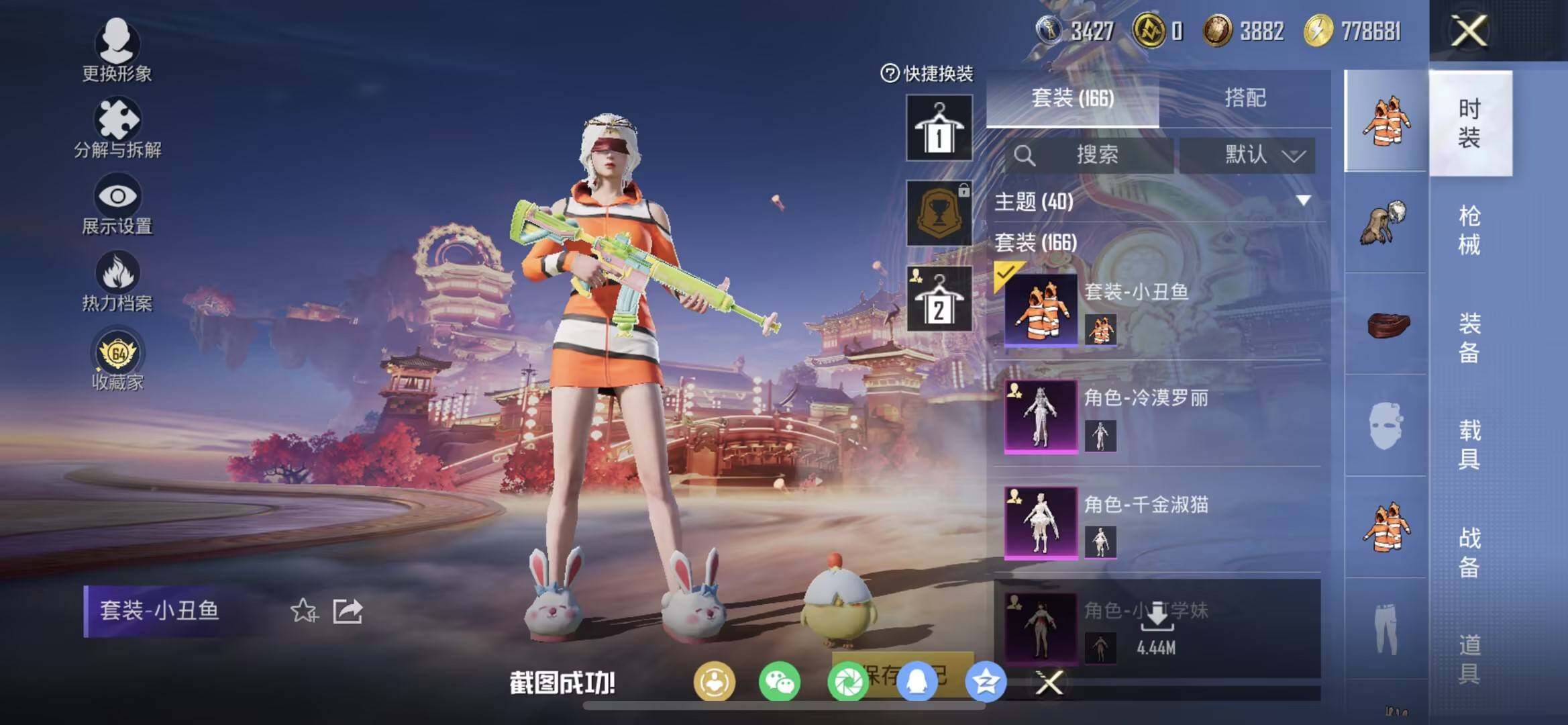 苹果 手Q-8粉装-5特效枪-0载具-2粉色飞行器-63218热力值-14王牌印记-166套装-204枪皮