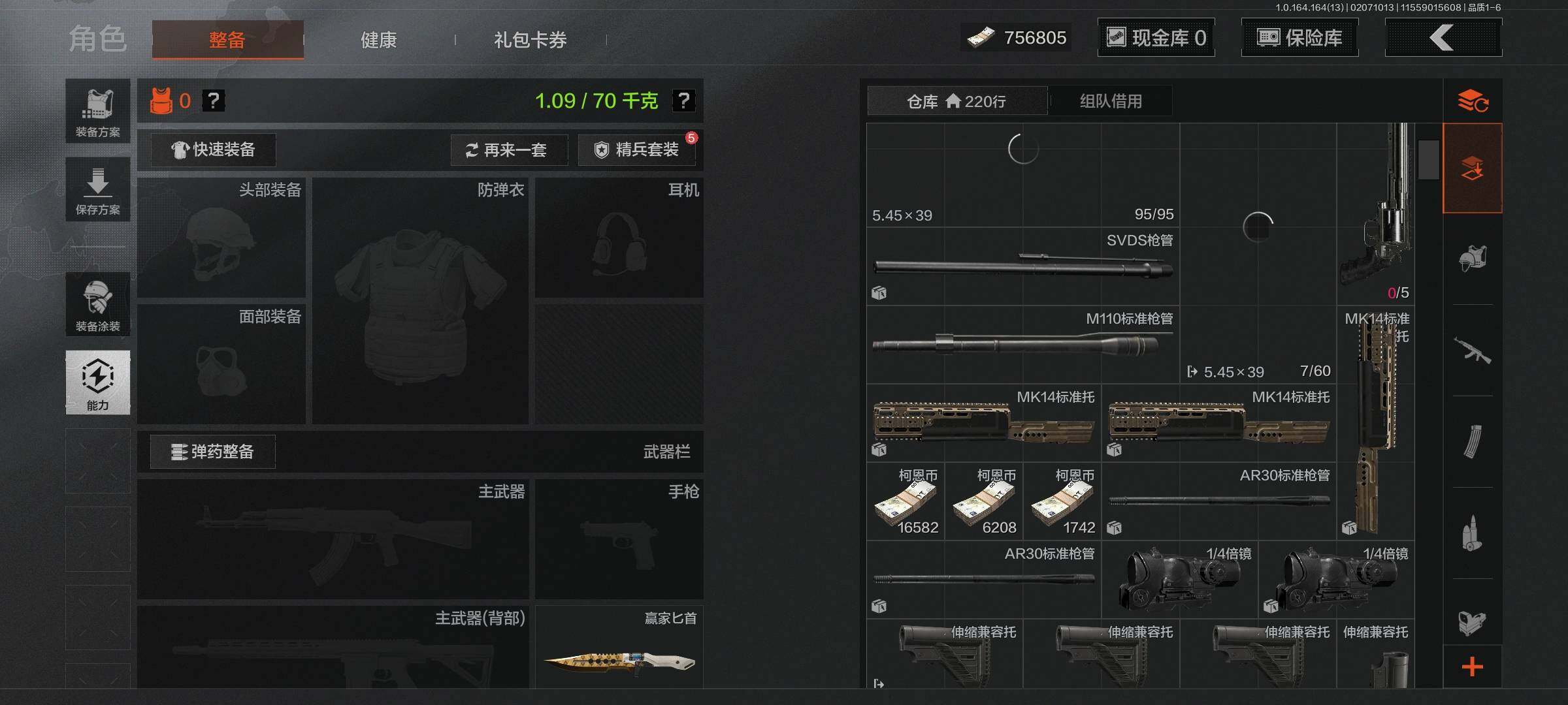 【AQN144】等级:30/段位:暗区传说/仓库价值(百万):1.6/柯恩币:756805/苍穹利爪/赢家匕首