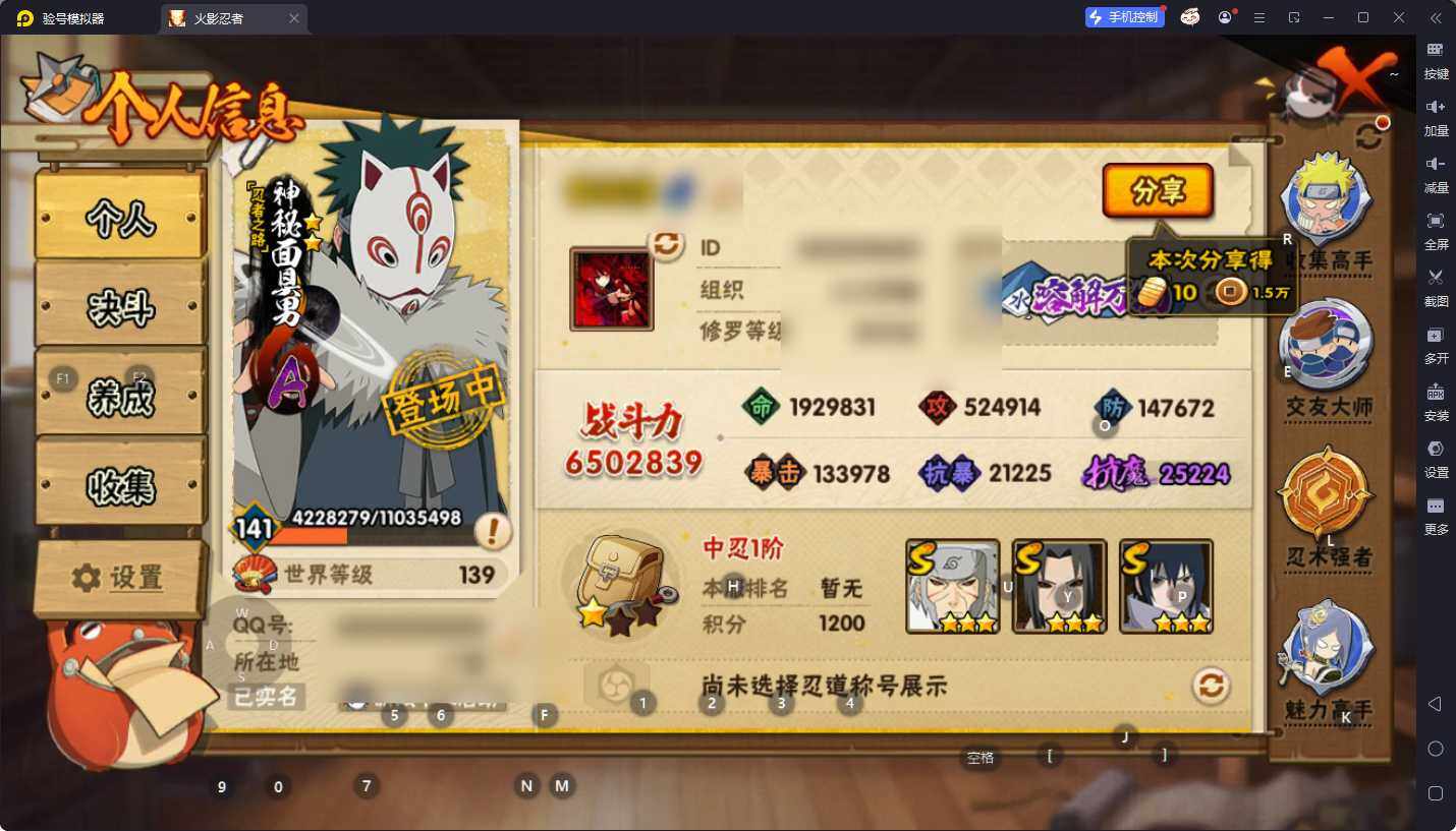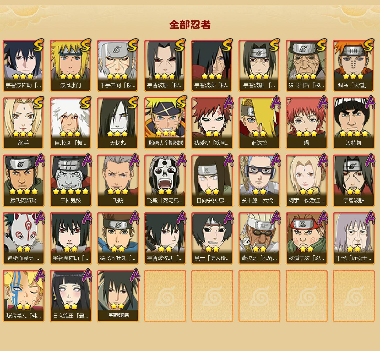 【HYYH1091】V7/战力650W/S忍12/A忍23/秽土转生-宇智波斑/忍界大战-日向宁次/侠隐江湖-纲手/纲手/疾风传-我爱罗/死司凭血-飞段/宇智波鼬/永恒万花筒-宇智波佐助/秽土转生-宇智波鼬/3星飞段/秽土转生-猿飞日斩/天道-佩恩/3星漩涡鸣人·宇智波佐助/波风水门/3星蝎/忍界大战-秋道丁次/桃式显现-漩涡博人/忍界大战-奇拉比/秽土转生-千手扉间/忍者之路-神秘面具男/六代目水影-长十郎/4星猿飞阿斯玛/舞之豪杰-自来也/4星迈特凯/四代目土影-黑土/最终章-日向雏田/万花