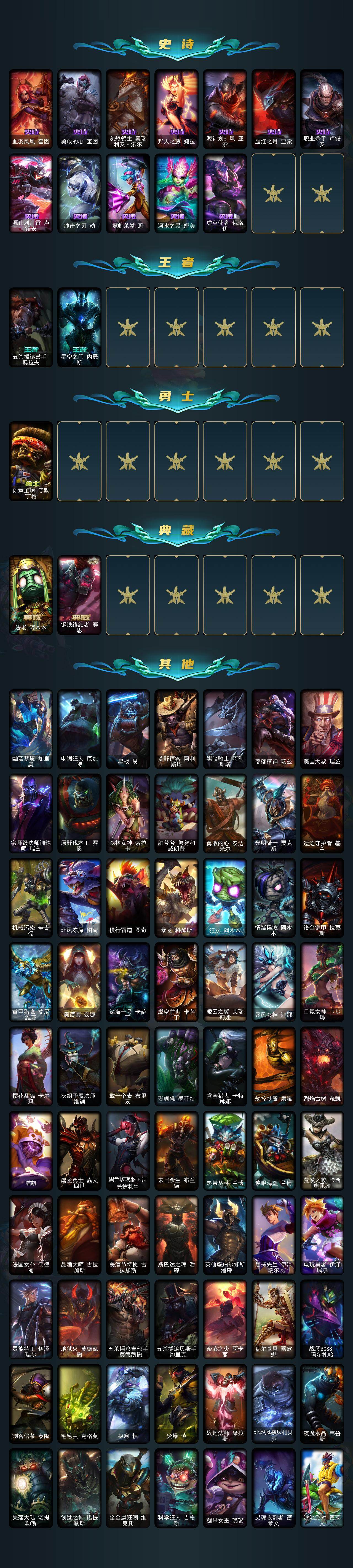 【LOLYH1255】132英雄/173皮肤/2终极/2神话/25限定/2臻彩/9炫彩/14传说/47史诗/白银账号等级:215/十周年纪念安妮/源代码乐芙兰/霸天巨兽雪崩墨菲特/魔女阿卡丽虚荣/广寒仙子嫦娥/点心宝贝阿木木/阿木木“主人不要我了”/冬季仙境卡尔玛/喜庆之树茂凯/雪默丁格/冰雪兽纳尔/DJ娑娜/武装战姬厄运小姐/Fnatic卡尔萨斯/暗杀星奥莉安娜/SSW图奇/安妮梦游仙境/暗裔英雄盖伦/胜利枪神格雷福斯/胜利之剑亚托克斯/胜利之运崔斯特/南瓜头费德提克/灵魂收割者索拉卡/糖果使