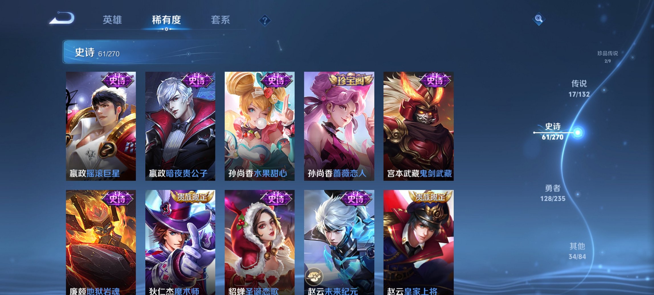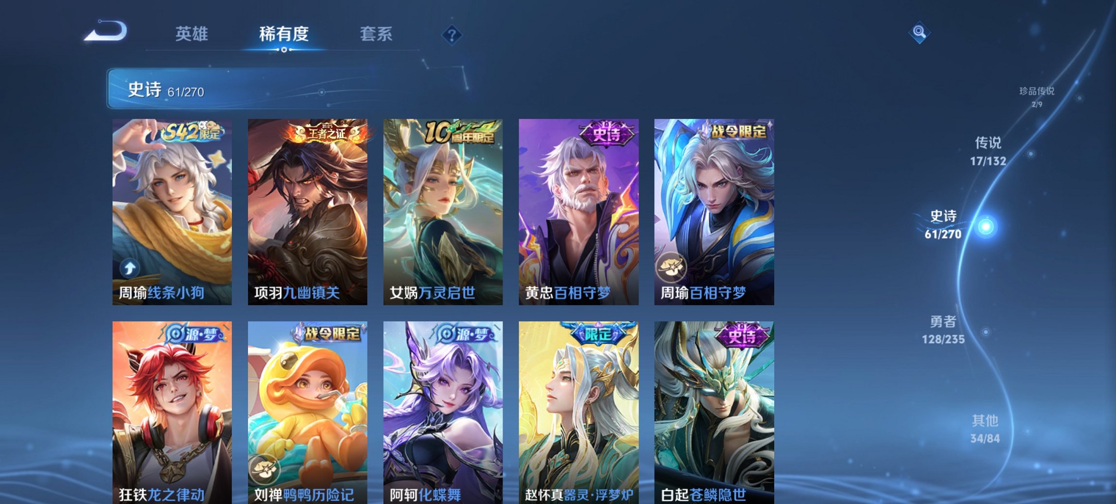 2珍品17传说243皮肤1水晶1星元1金标-128英雄