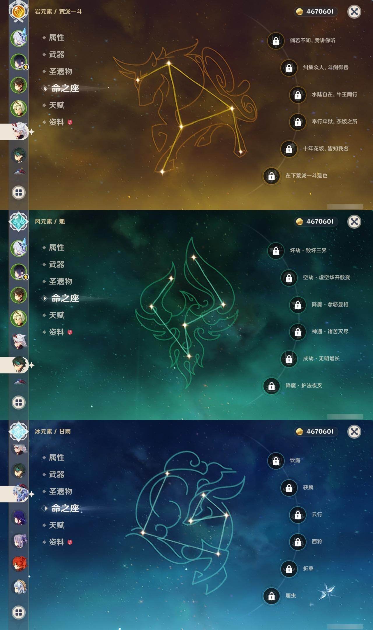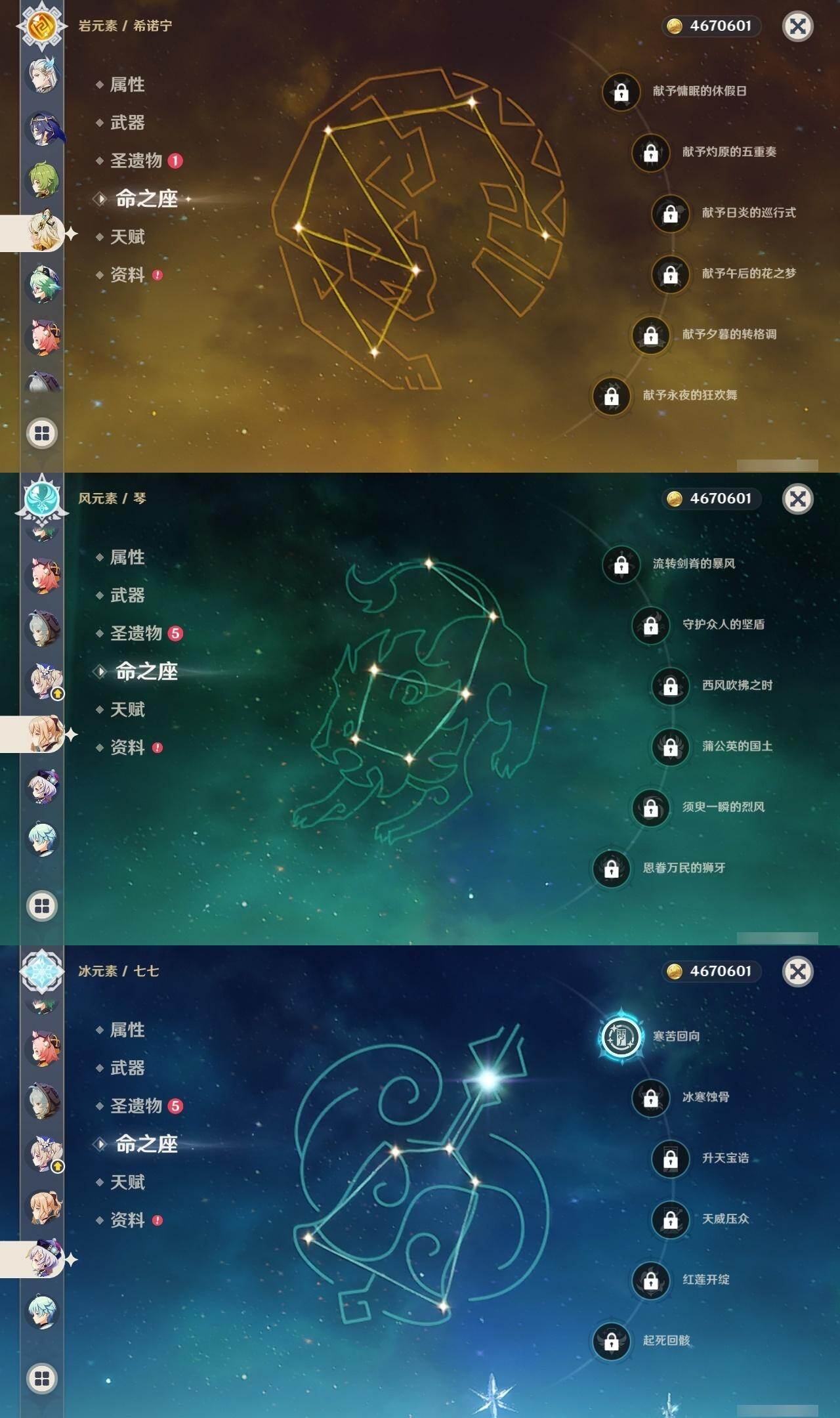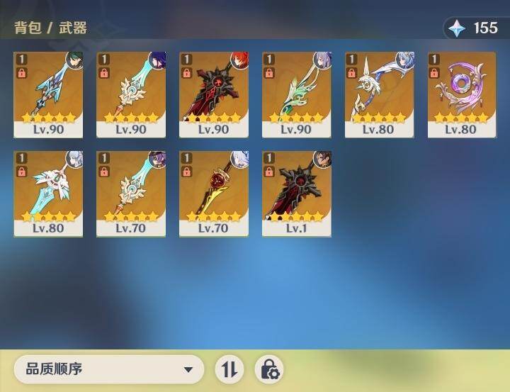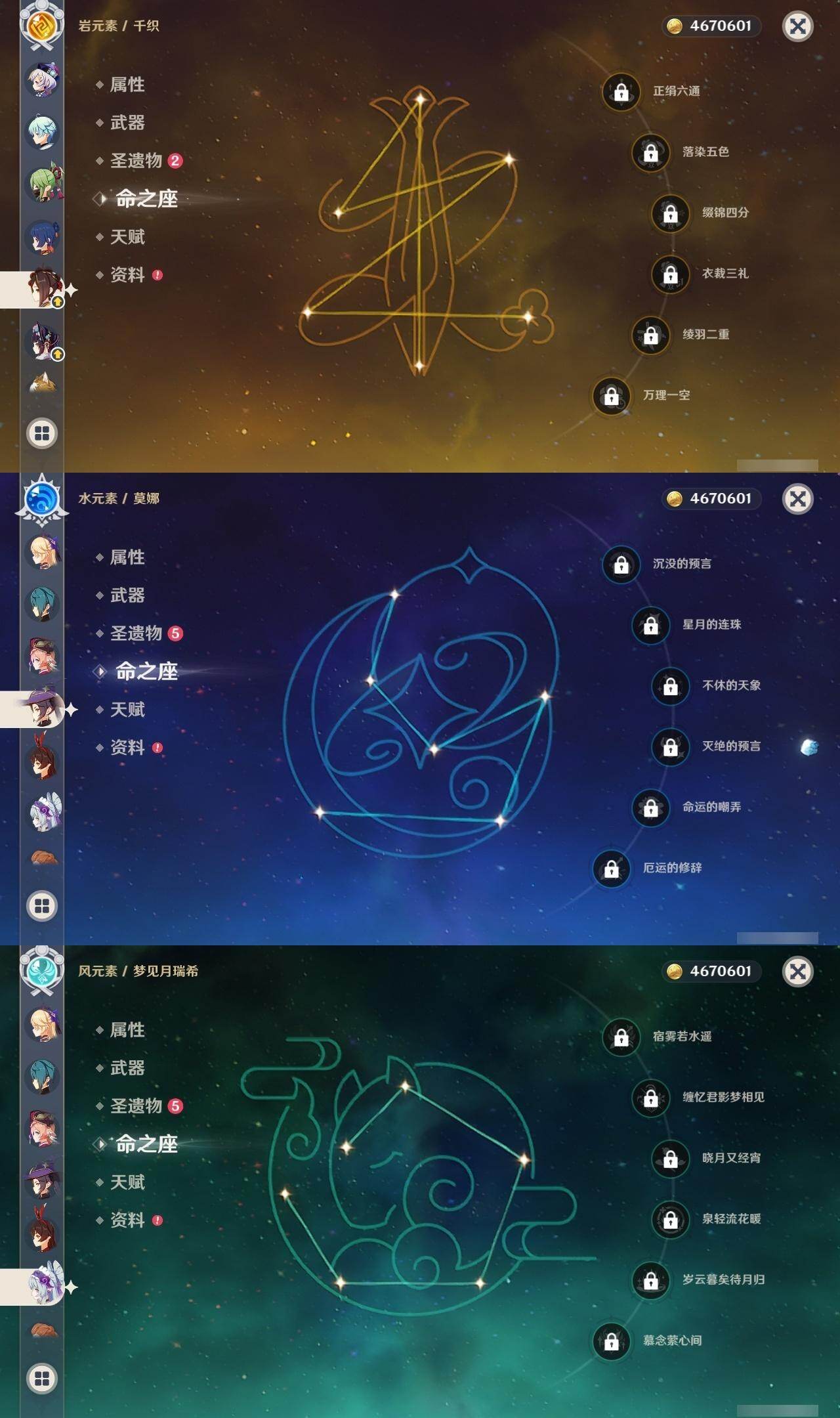 0命千织,0命那维莱特,1命迪希雅,1命提纳里,0命夜兰,0命荒泷一斗,0命雷电将军,0命神里绫华,2命钟离,0命甘雨,0命魈,1命刻晴,1命七七,0命琴,0命莫娜,1命迪卢克,0命希诺宁,0命梦见月瑞希,0命丝柯克,精1有乐御簾切,精1裁叶萃光,精1息灾,精1不灭月华,精1天空之脊,精1阿莫斯之弓,精1天空之刃,精1狼的末路