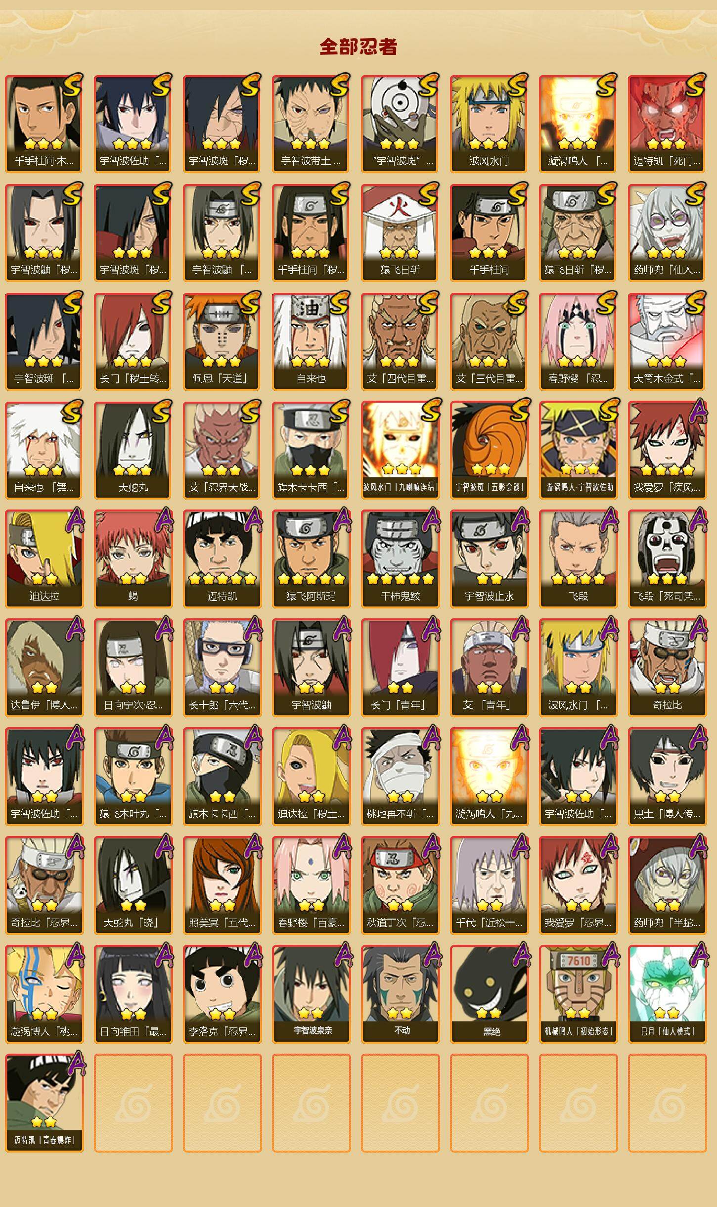 【HYZ2996】V11/S忍31/A忍42/秽土转生-宇智波斑/忍界大战-旗木卡卡西/3星波风水门「九喇嘛连结」/五代目雷影-达鲁伊/宇智波止水/5星猿飞阿斯玛/须佐能乎-旗木卡卡西/秽土转生-猿飞日斩/五代目水影-照美冥/5星迈特凯/自来也/忍界大战-奇拉比/木叶创立-千手柱间/仙人模式-药师兜/六代目水影-长十郎/百豪-春野樱/白面具-宇智波斑/死门-迈特凯/千手柱间/猿飞日斩/四代目土影-黑土/秽土转生-迪达拉/半蛇斗篷-药师兜/3星飞段「死司凭血」/忍界大战-春野樱/万花筒写轮眼-宇智