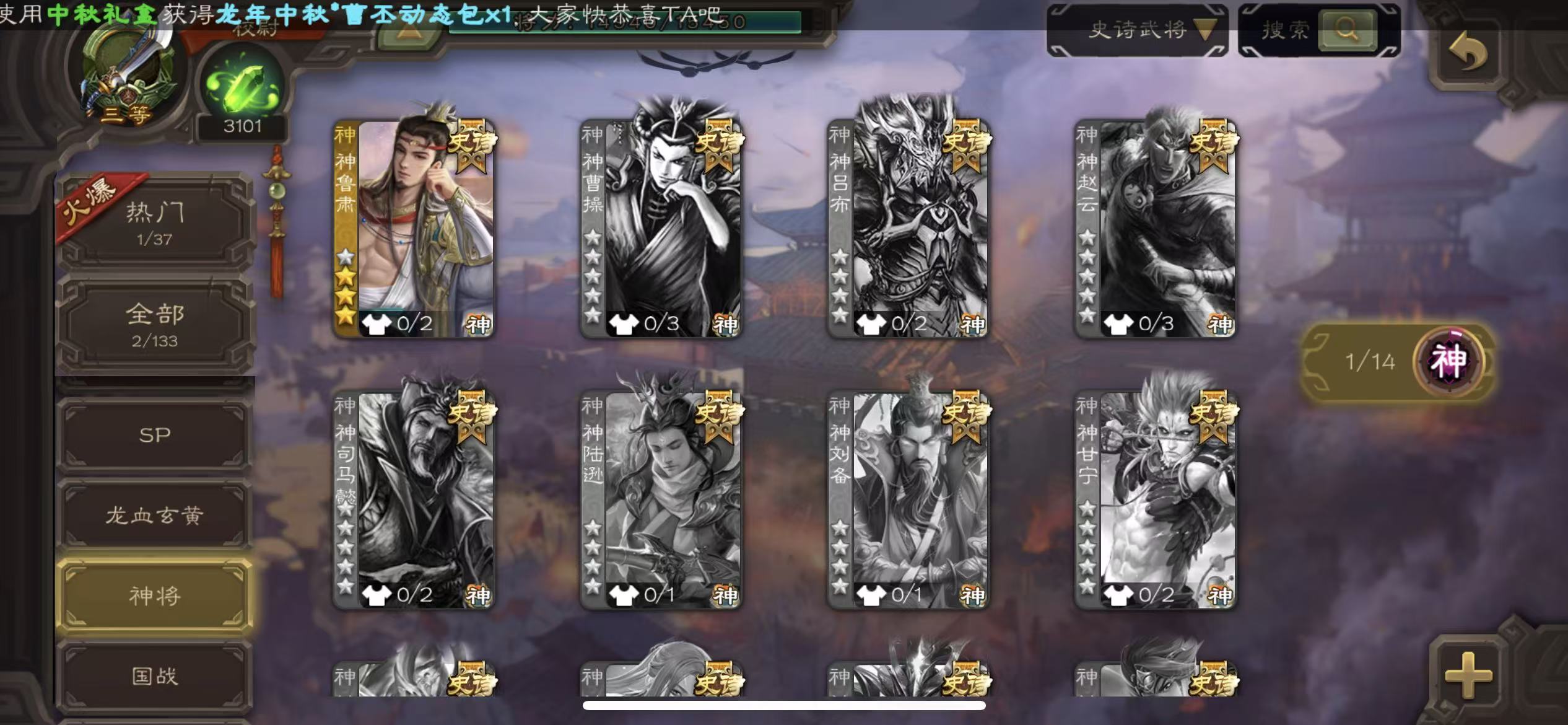 史诗武将数量: