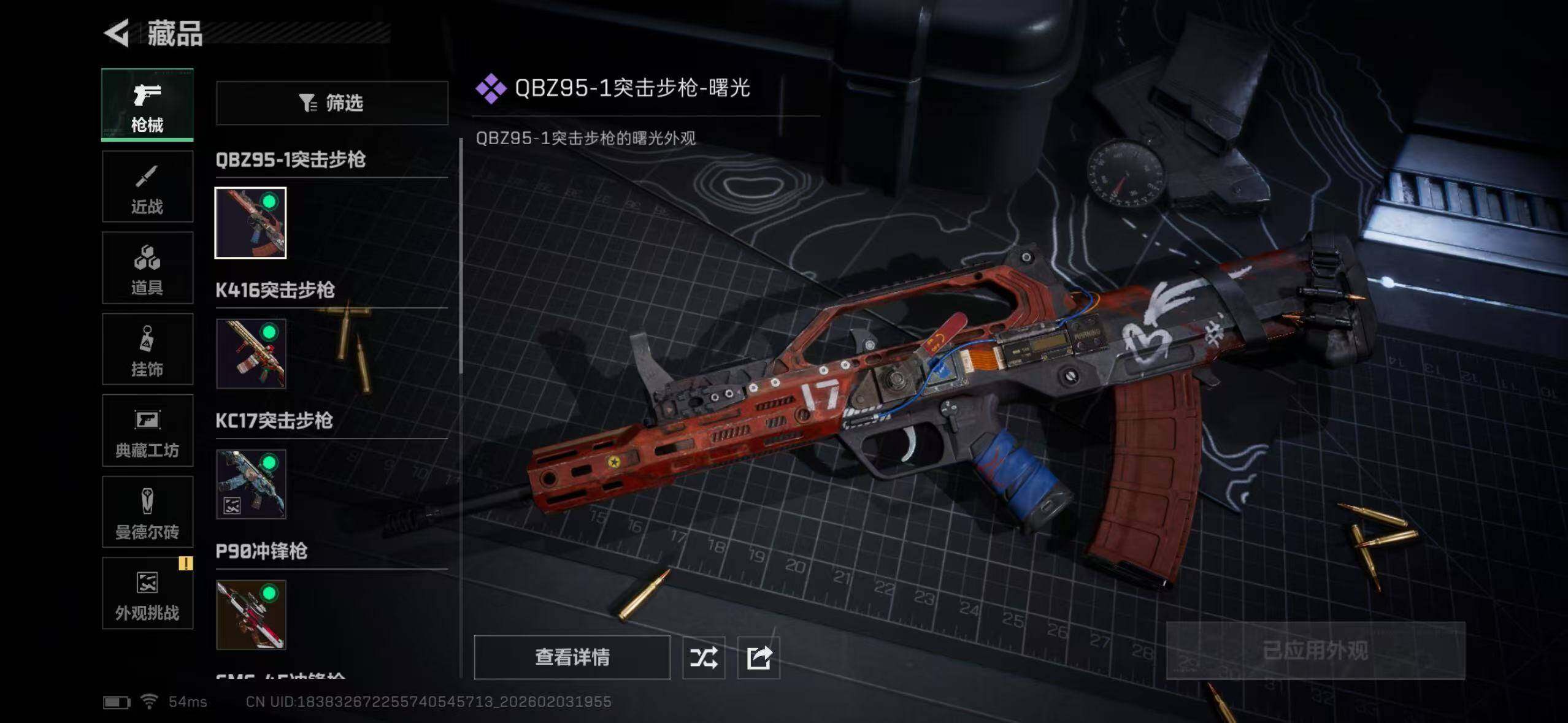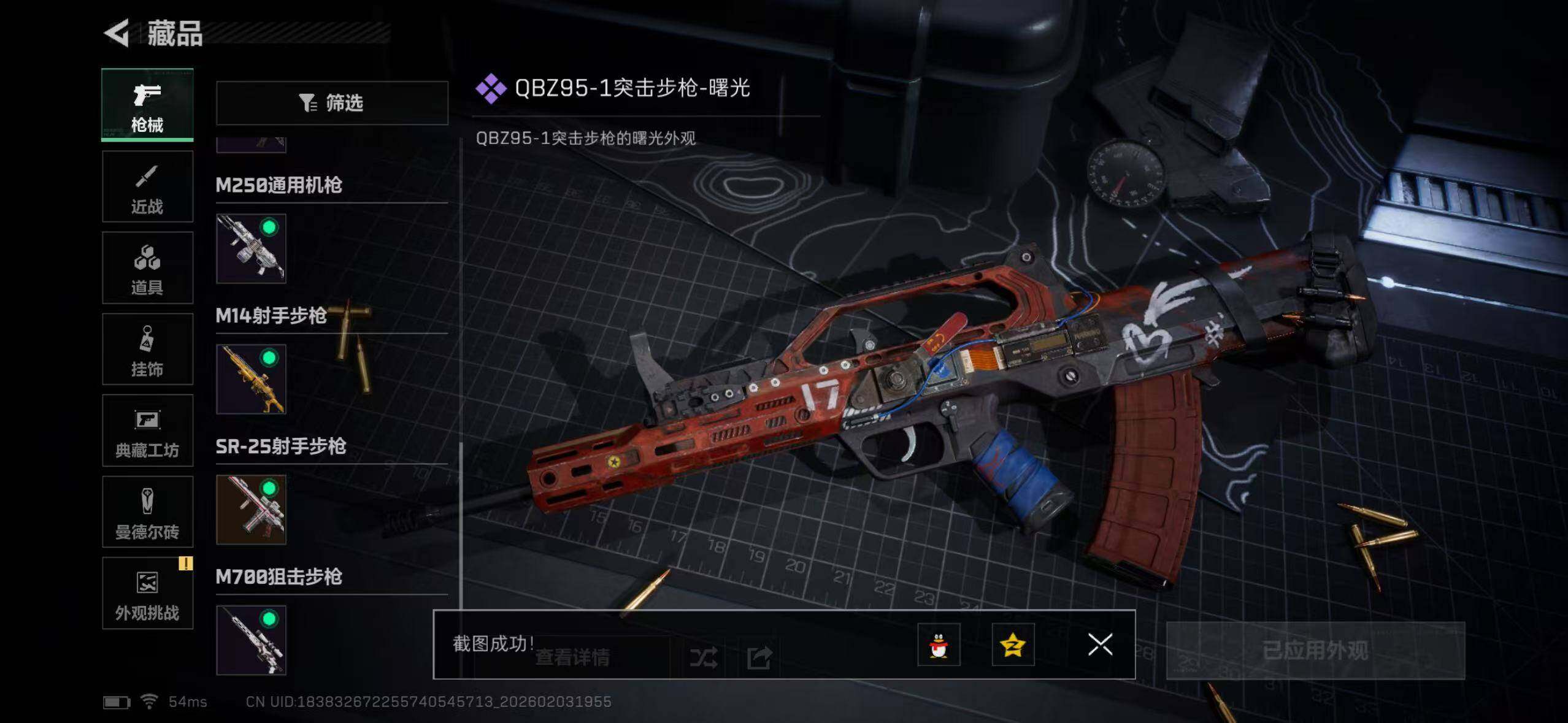 【史诗外观】:KC17突击步枪-碎冰行动,QBZ95-1突击步枪-曙光,K416突击步枪-冬日风情,SMG-45冲锋枪-阿萨拉特攻,勇士冲锋枪-深海恐惧,M14射手步枪-工业狂潮,M700狙击步枪-蝮蛇