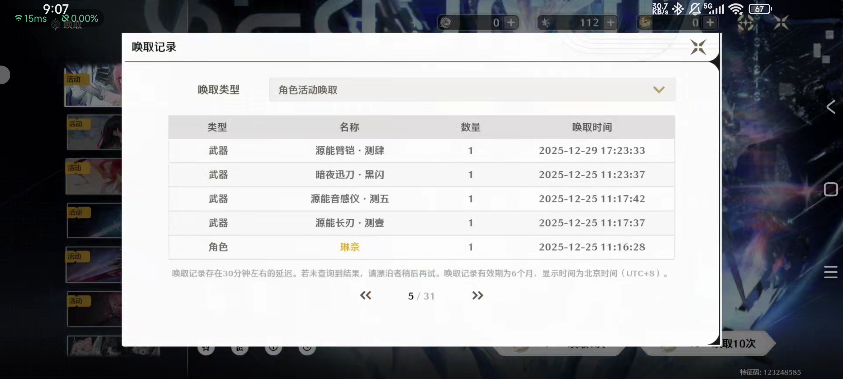 55级低探索度,卡提0+1,嘉贝莉娜0+1,琳奈,今汐,up池垫了25发,武器池垫了36发55级低探
