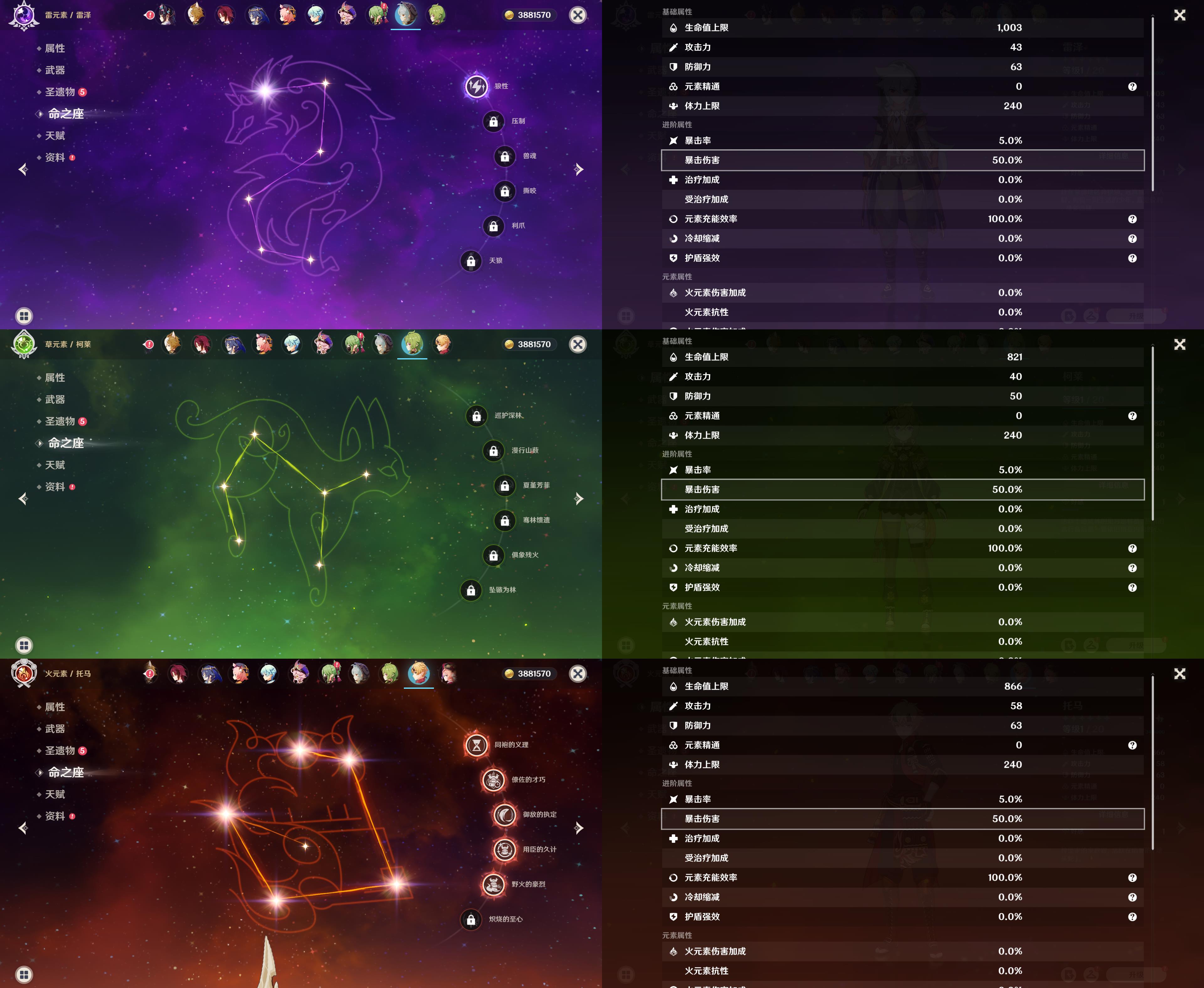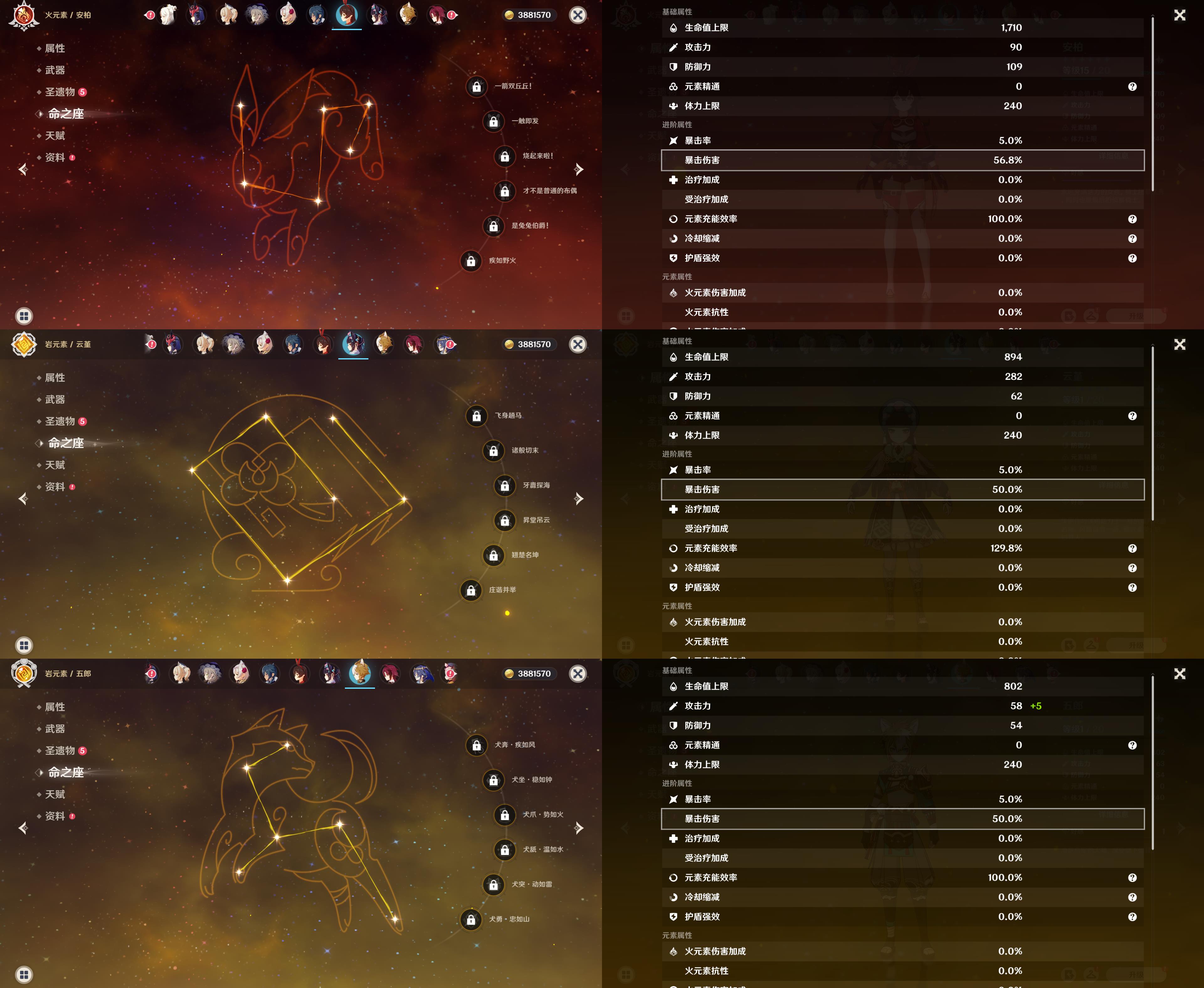 五星角色: